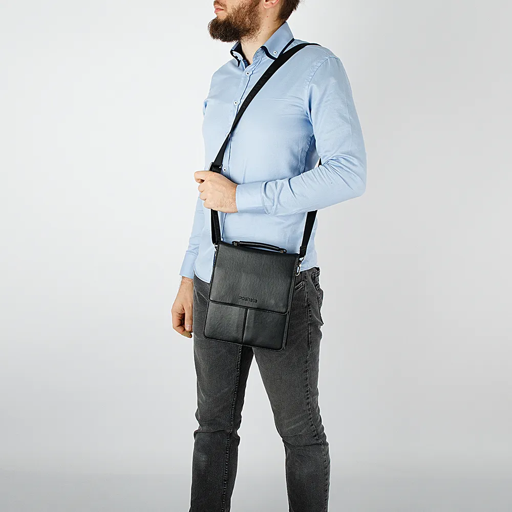 Стильная, небольшая мужская сумка от бренда Mr.Bag это хороший повседневный вариант, куда поместиться всё самое необходимое. Сумка в ыполнена из мягкой искусственной кожи и оснащена регулируемым текстильным ремнём. Сзади прорезной карман на молнии, спереди клапан, с фигурным вырезом, на двух магнитах, под ним накладной карман без застёжки и основное отделение на молнии, внутри которого ещё один кармашек на молнии. Модель чёрного цвета, практичная, дополнена металлической фурнитурой.