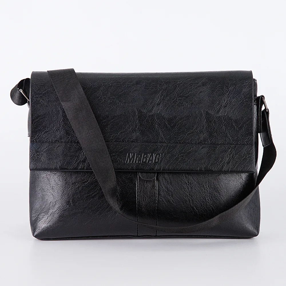 Стильная, деловая мужская сумка от бренда Mr.Bag это хороший повседневный вариант, куда поместятся все необходимые документы. Сумка выполнена из мягкой искусственной кожи и оснащена регулируемым текстильным ремнём. Сзади прорезной карман на молнии, спереди клапан на двух магнитах, под ним накладной карман без застёжки и основное отделение на молнии, внутри которого ещё один карман на молнии. Модель чёрного цвета, практичная, дополнена металлической фурнитурой и декорирована «язычком».