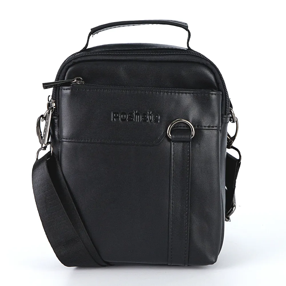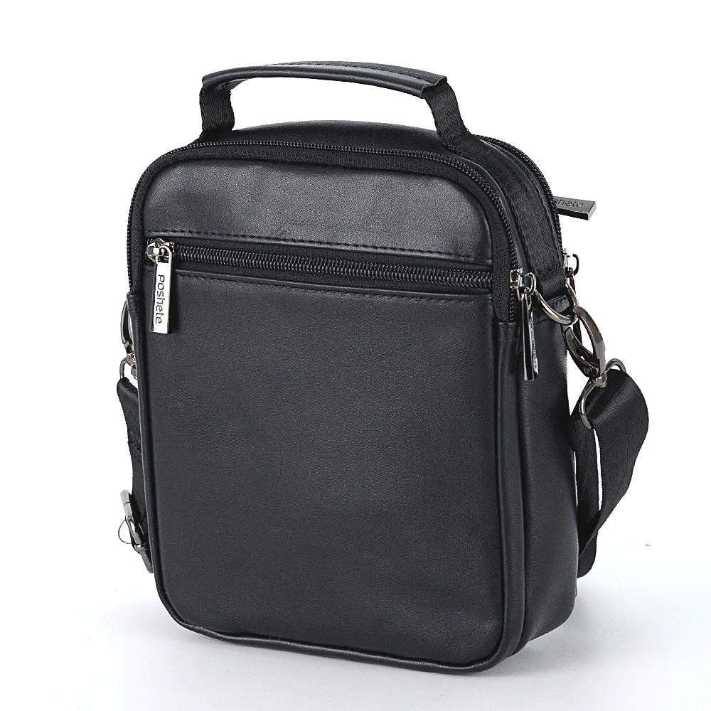 Сумка от торговой марки Poshete выполнена из натуральной кожи черного цвета. Модель с одной ручкой и съемным регулируемым плечевым ремнем. Два отделения на молнии с фирменной подкладкой; в заднем – карман на молнии. На лицевой и задней сторонах – карман на молнии.