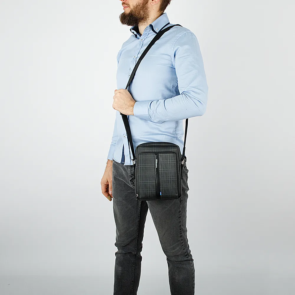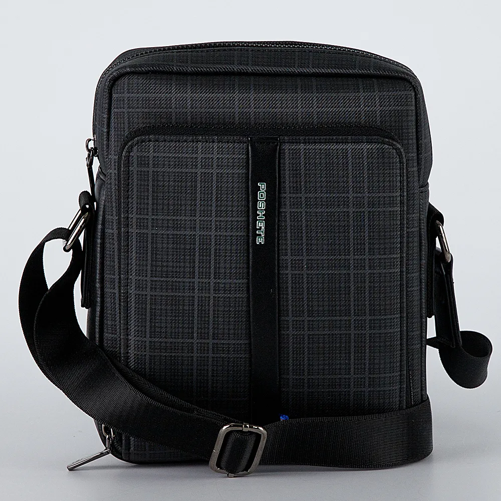Мужская сумка Poshete выполнена из практичного текстильного материала серого цвета. Модель прямоугольной формы, вместительная. Основ ное отделение на молнии, спереди карман на молнии. Сумка носится на регулируемом плечевом ремне.