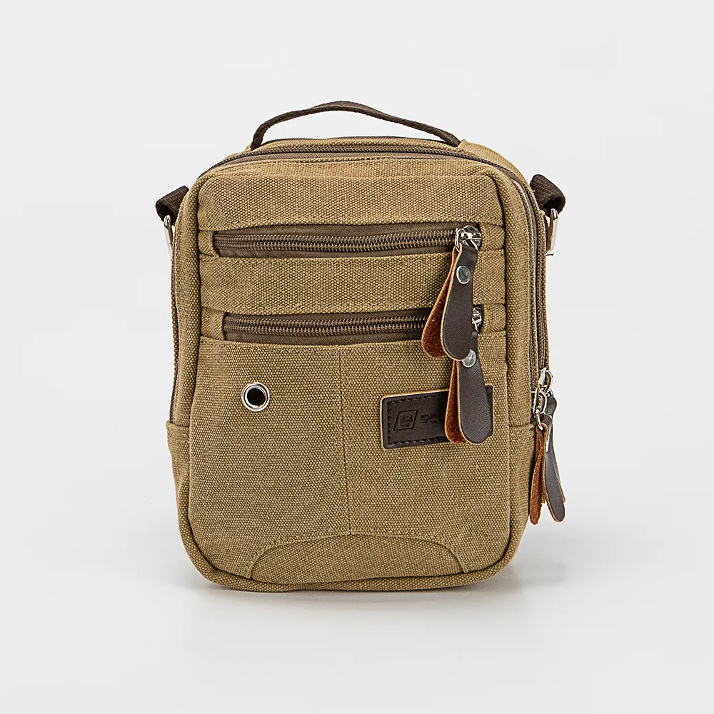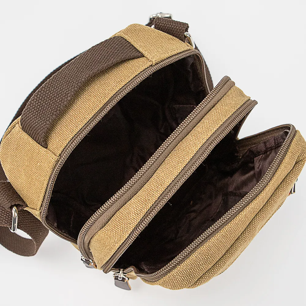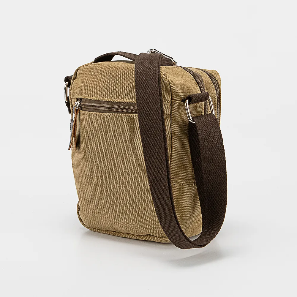 Небольшая повседневная мужская сумка Ecotope горчичного цвета, выполнена из плотной холстяной ткани и носится через плечо на несъёмном регулируемом ремешке. Сумка с двумя независимыми отделениями на молниях и имеет три дополнительных кармана снаружи также на молниях, чтобы всё самое необходимое всегда было под рукой.