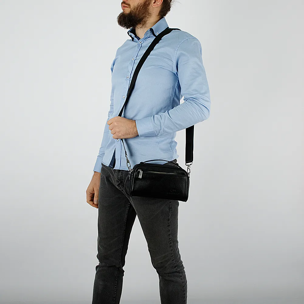 Барсетка из новой коллекции Francesco Molinary выполнена в духе итальянского дизайна и с вниманием к деталям. Классическая модель из натуральной кожи с отличным качеством отделки, чёрного цвета, дополнена металлической фурнитурой. Снаружи, прорезные карманы на молниях спереди и сзади, эргономичная ручка для ношения в руке. Две молнии для открытия основного отделения, внутри текстильная отделка.