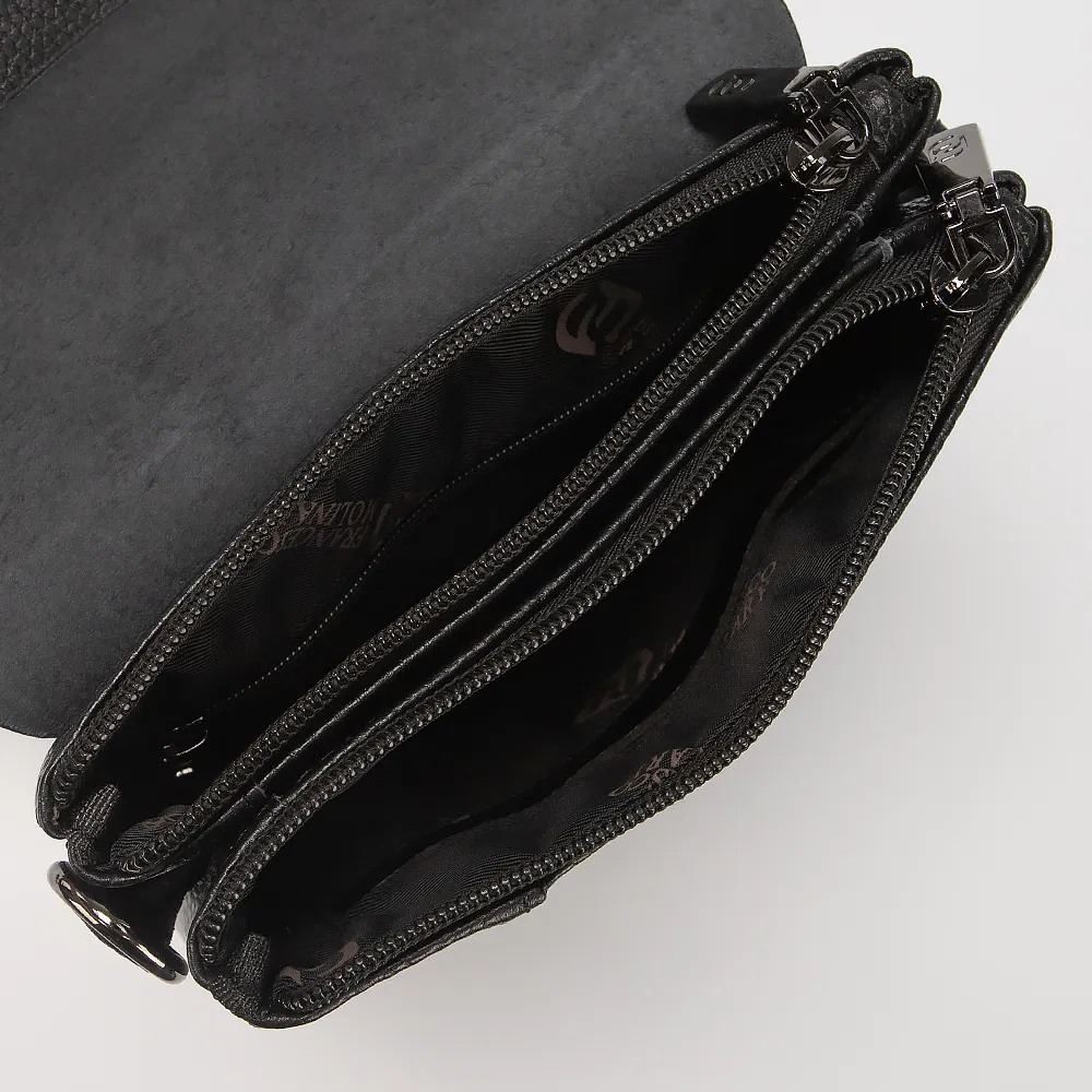 Сумка-планшет от торговой марки Francesco Molinary из натуральной зернистой кожи черного цвета. Компактная модель вертикальной ориен тации со съемным регулируемыми плечевым ремнем, выполненным из текстильного материала. Закрывается клапаном на магните. Два отделения на молнии с фирменной подкладкой. В переднем – накладной карман, в заднем – карман на молнии. Между отделениями имеется небольшой отсек без застежки. На лицевой стороне – вертикальный карман на молнии. На задней – карман на молнии.
