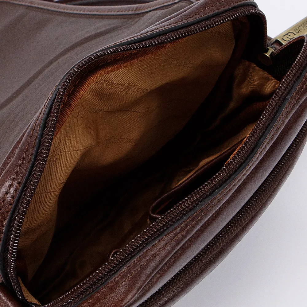 Сумка-планшет от торговой марки Francesco Molinary выполнена из натуральной кожи коричневого цвета. Модель вертикальной ориентации с несъемным регулируемым плечевым ремнем. Клапан на магните закрывает два кармана на молнии и отделение на молнии. Внутри: фирменная подкладка, карман. На задней стороне – карман на молнии.