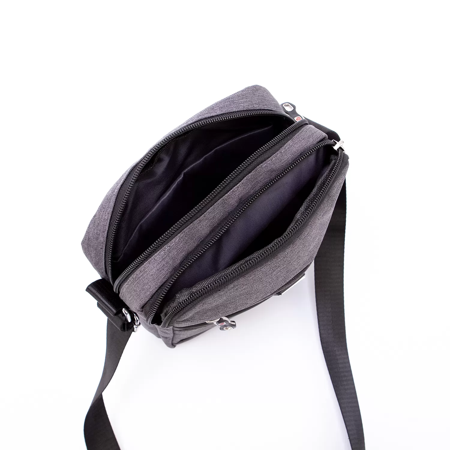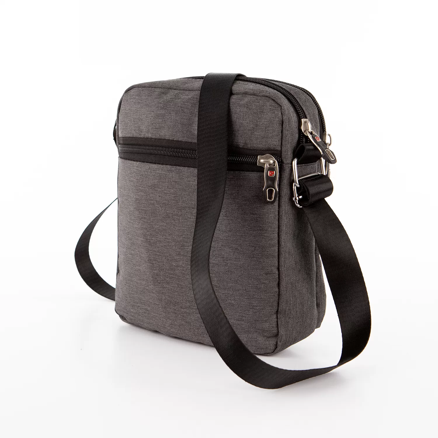 Сумка-планшет от торговой марки Ecotope из прочного текстильного материала и искусственной кожи в сочетании черного и серого цвета. Модель с несъемным регулируемым плечевым ремнем. Два отделения на молнии, с текстильной подкладкой. В основном – карман с уплотненной стенкой. На лицевой и задней сторонах – карман на молнии.
