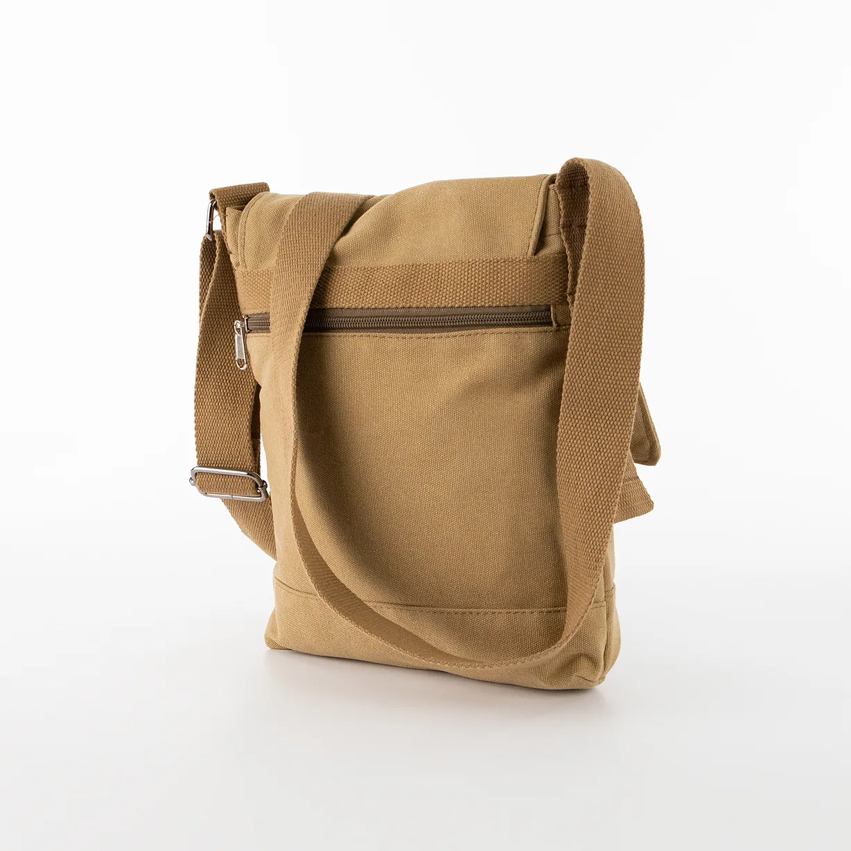 Сумка-планшет от торговой марки Ecotope из брезентового материала светло-коричневого цвета camel. Модель вертикальной ориентации с несъемным регулируемым плечевым ремнем. Клапан на магнитной кнопке закрывает накладной карман без застежки, кольцо для крепления и отделение. Отделение фиксируется магнитной кнопкой. Внутри: без подкладки, навесной карман на молнии. На задней стороне – карман на молнии.