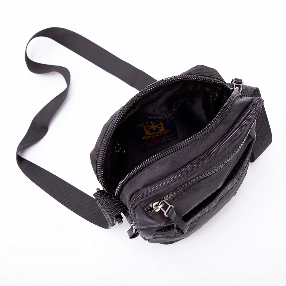 Сумка-планшет от торговой марки Volunteer из практичного прочного текстильного материала черного цвета. Модель с несъемным регулируемым плечевым ремнем. Два отделения на молнии, с текстильной подкладкой. В заднем отделении – карман на молнии, накладной карман. На лицевой стороне – два кармана на молнии. На задней стороне – карман на молнии.