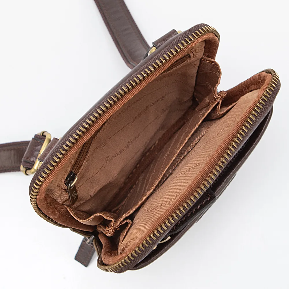 Сумка-планшет от торговой марки Francesco Molinary изготовлена из натуральной кожи коричневого цвета. Компактная модель с несъемным регулируемым плечевым ремнем. Отделение на молнии по трем сторонам, что обеспечивает удобный доступ. Внутри: фирменная подкладка, перегородка, создающая два отсека, карман на молнии, накладной карман. На лицевой стороне – карман на молнии.