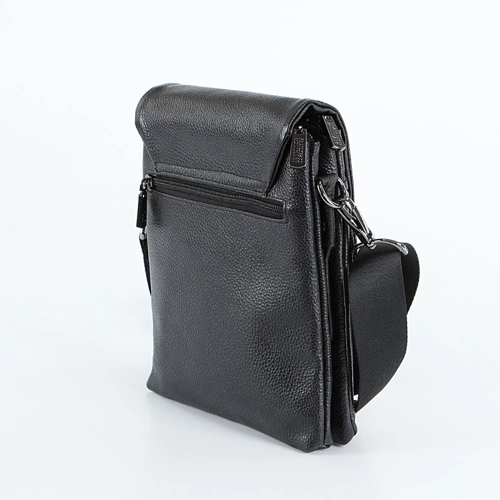 Сумка от торговой марки Francesco Molinary из натуральной кожи черного цвета. Модель со съемным регулируемым плечевым ремнем, выполненным из текстильного материала. Закрывается клапаном на скрытых магнитах. Два отделения на молнии, с текстильной подкладкой. В одном из отделений – карман на молнии, в другом – накладной карман. Между отделениями имеется кармашек. На лицевой стороне – накладной карман без застежки. На задней стороне – карман на молнии.
