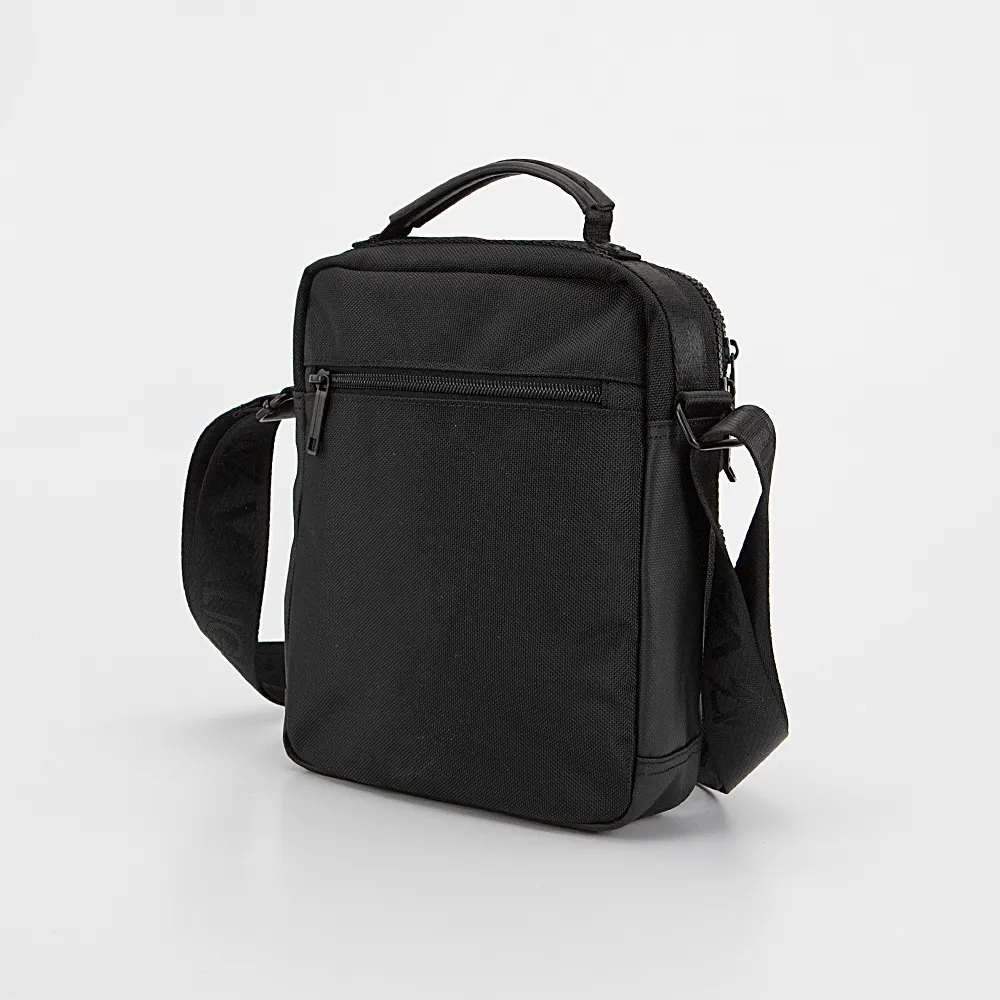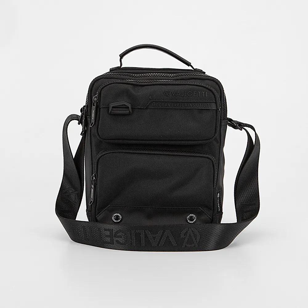 Сумка от торговой марки Valigetti из прочной текстильной ткани черного цвета. Компактная модель с одной ручкой и несъемным регулируемым плечевым ремнем. Отделение на молнии. Внутри: текстильная подкладка, накладной карман с уплотненной стенкой для ноутбука, органайзер, крепление для ключей. На лицевой стороне – два кармана на молнии. На задней стороне – карман на молнии.