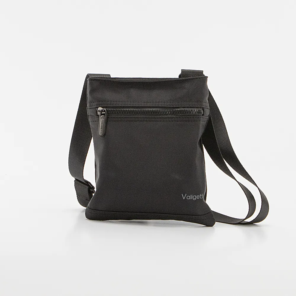 Cумка-планшет от торговой марки Valigetti из прочного практичного непромокаемого текстильного материала черного цвета. Модель с несъемным регулируемым плечевым ремнем. Отделение на молнии. Внутри: текстильная подкладка, карман на молнии. На лицевой стороне – карман на молнии.