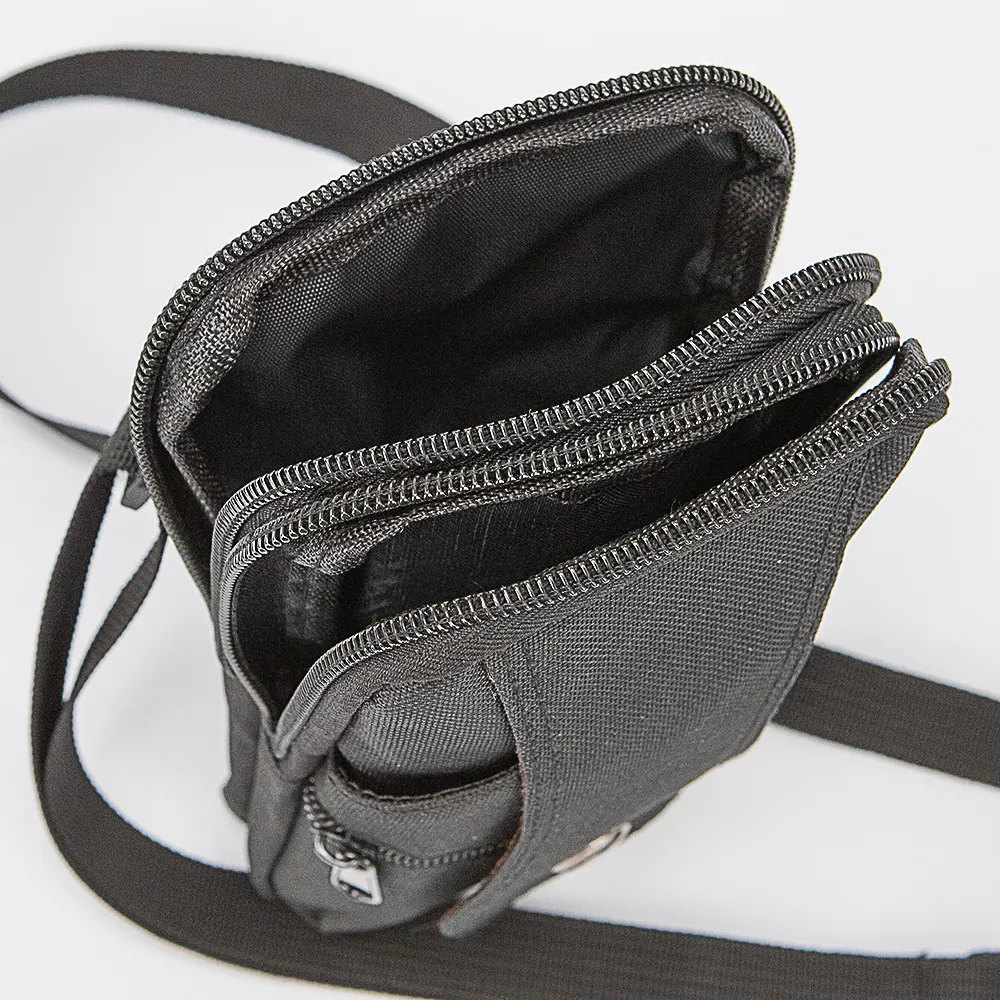 Сумка-планшет от торговой марки Ecotope из практичного текстильного материала черного цвета. Компактная модель вертикальной ориентации со съемным регулируемым плечевым ремнем и лямкой для ношения на ремне сзади. Два отделения на молнии, с текстильной подкладкой. На лицевой стороне – накладной карман и карман на молнии, которые закрываются хлястиком на кнопке.