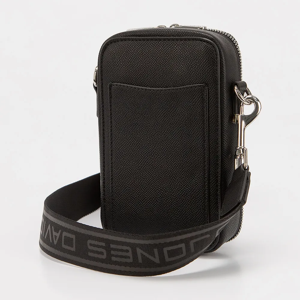 Сумка от торговой марки David Jones из искусственной кожи черного цвета. Компактная модель вертикальной ориентации со съемным регулируемым широким плечевым ремнем. Отделение на молнии со встречными бегунками, раскрывается по трем сторонам. Внутри: фирменная подкладка, карманы для карт. На задней стороне - накладной карман.
