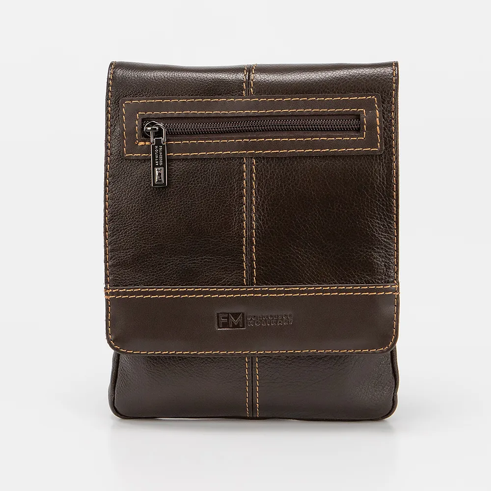 Сумка-планшет от торговой марки Francesco Molinary из натуральной кожи коричневого цвета. Модель со съемным регулируемым плечевым ремнем. Клапан на магнитных кнопках закрывает накладной карман на молнии и отделение с фирменной подкладкой. Внутри карман на молнии, накладной карман. На задней стороне - карман на молнии. На клапане имеется дополнителный карман на молнии.