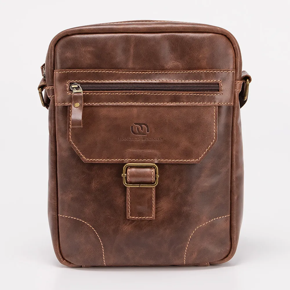 Сумка-планшет от торговой марки Francesco Molinary изготовлена из натуральной кожи коричневого цвета. Компактная модель с несъемным регулируемым плечевым ремнем. Отделение на молнии. Внутри: фирменная подкладка, карман на молнии, накладной карман. На лицевой стороне - карман на молнии. На задней стороне - карман на молнии.