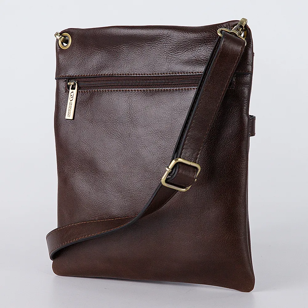Компактный но вместительный мужской планшет Francesco Molinary выполнен из натуральной кожи в коричневом цвете и оформлен золотистой фурнитурой. Модель на длинном плечевом регулируемом плечевом ремне, с одним отделением под молнией, тремя внешними карманами под молниями.
