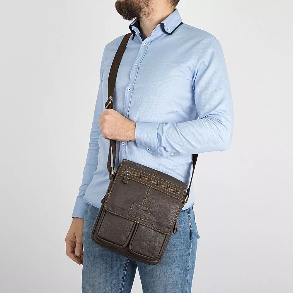 - Мужская сумка-планшет от бренда Poshete изготовлена из мягкой натуральной кожи;