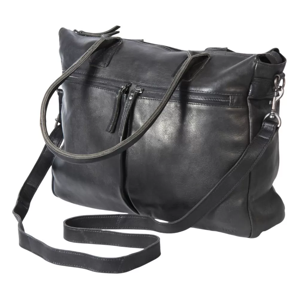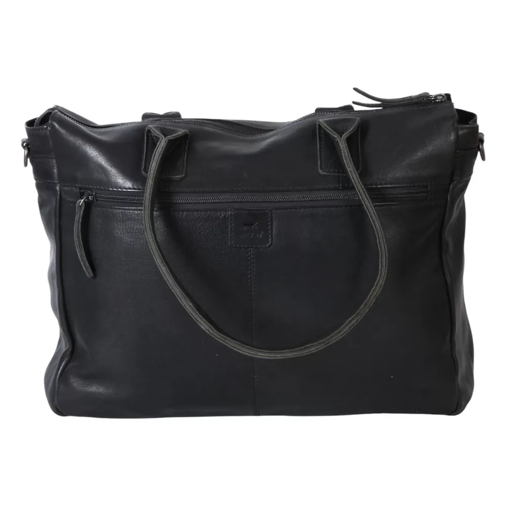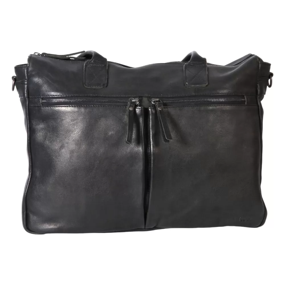 Деловая сумка от бренда Bear Design выполнена из натуральной кожи в черном цвете. Модель с двумя ручками и съемным регулируемым плечевым ремнем. Основное отделение на молнии, внутри текстильная подкладка, накладной карман на молнии, накладной карман с уплотненной стенкой для ноутбука. На лицевой и задней сторонах – карман на молнии.