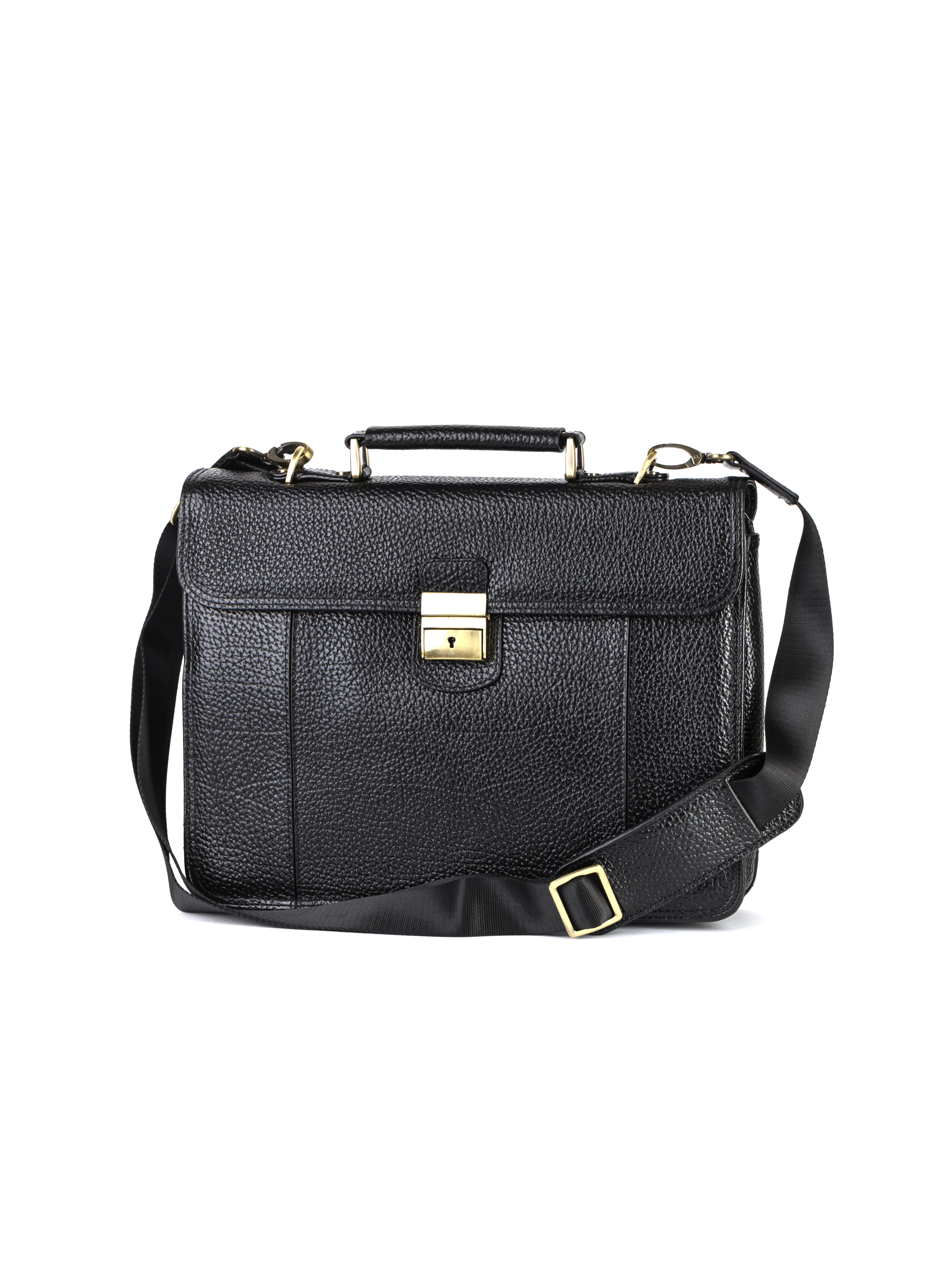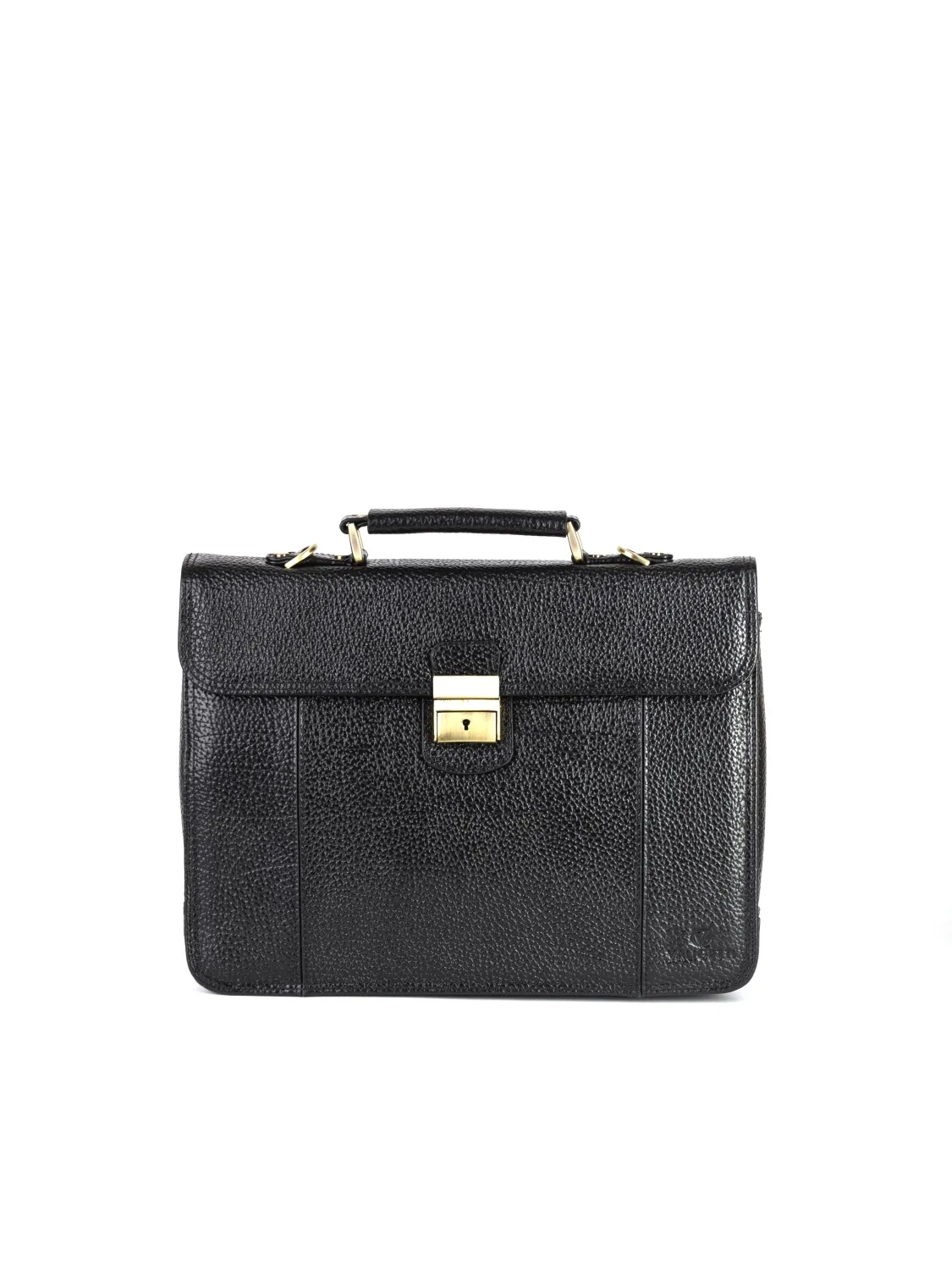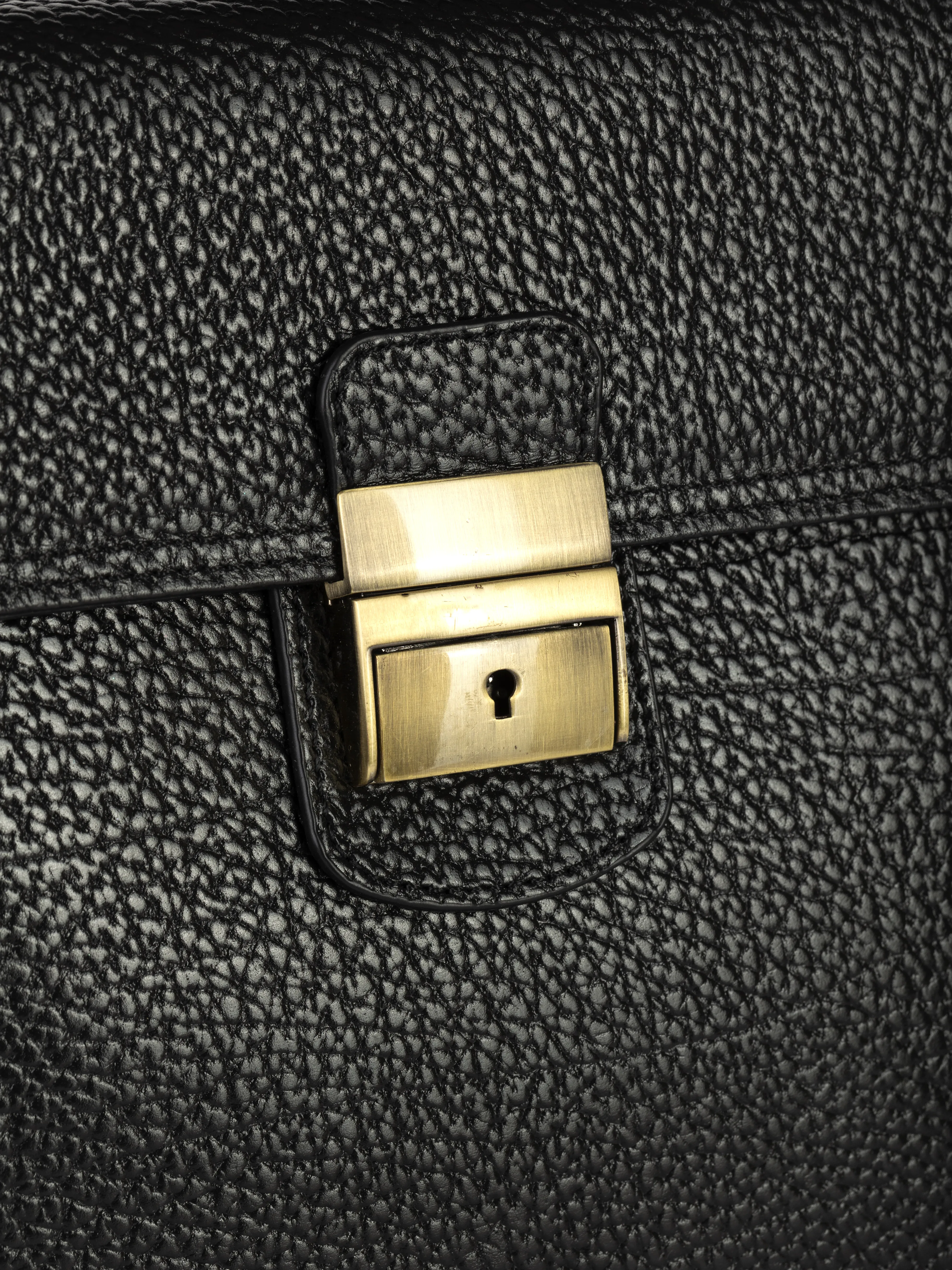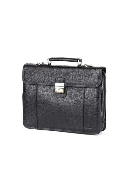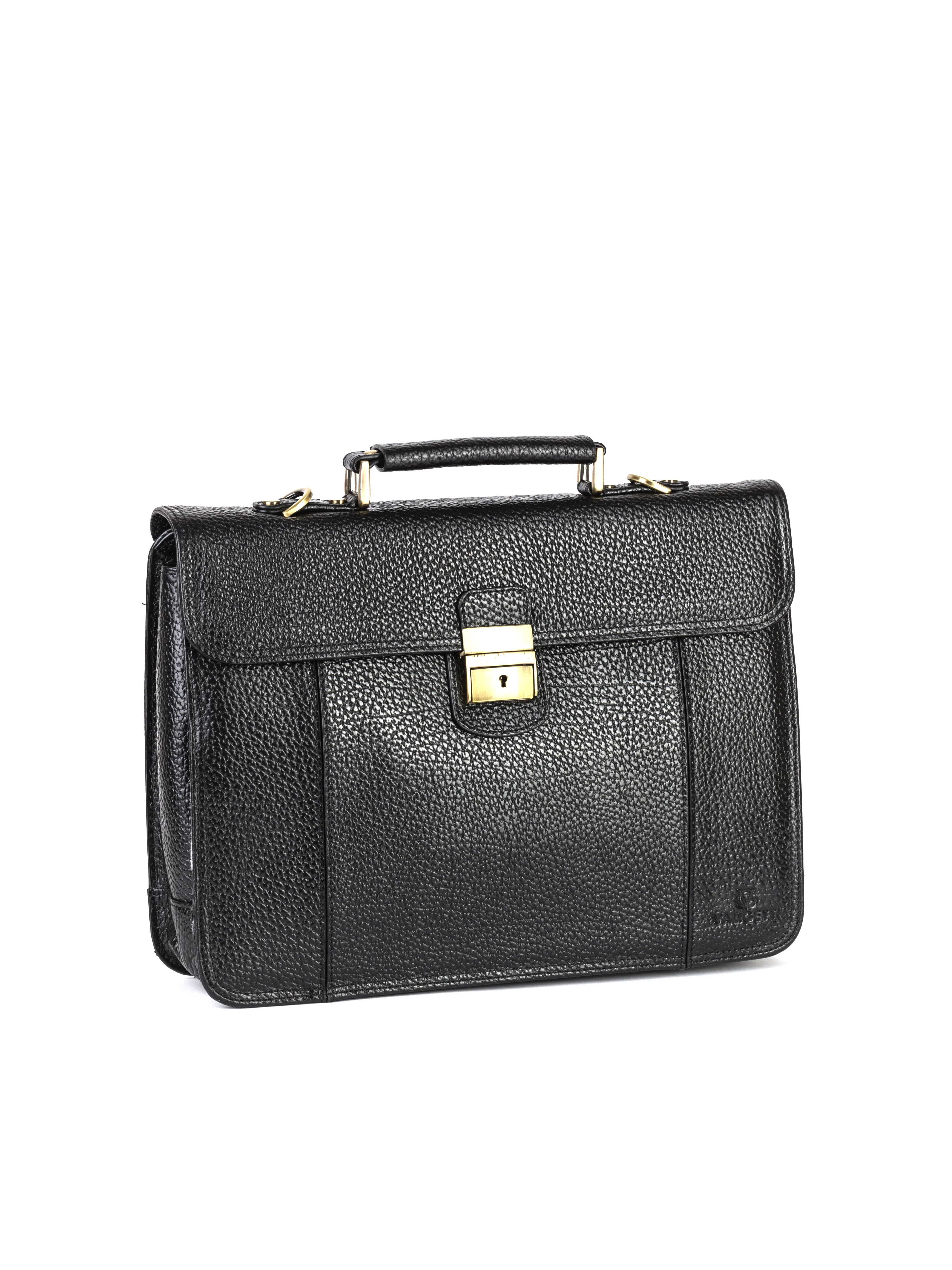 Портфель от торговой марки Valigetti из натуральной кожи черного цвета. Практичная функциональная модель с одной ручкой и съемным регулируемым плечевым ремнем с наплечником. Клапан на цупферном замке с замком (в комплекте имеется ключ) закрывает накладной карман и отделение с фирменной подкладкой. В отделении – три отсека, один из которых на молнии; имеется карман на молнии. На задней стороне – карман на молнии. Дно с накладками для защиты от износа.
