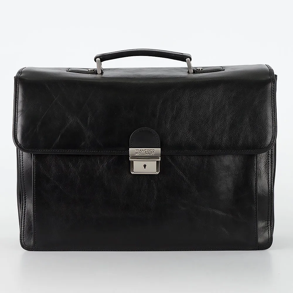 Стильный кожаный портфель Francesco Molinary состоит из двух больших основных отделений, одно из которых разделено средником на молнии. Накладной карман под клапаном закрывается на кнопку и удобен для ношения мобильного телефона, коммуникатора, ручек, кредиток и других необходимых мелочей. С тыльной стороны портфеля также имеется большой карман на молнии. Удобный ремень с наплечником покрыт кожей , благодаря чему ремень не растягивается, сохраняя свой внешний вид.