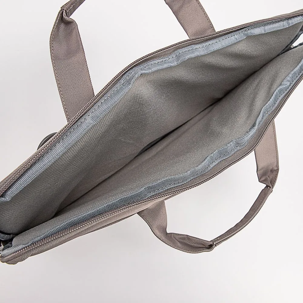 Сумка от торговой марки Ecotope из практичного текстильного материала. Плоская модель для ноутбука диагональю 16 дюймов, с двумя ручками, съемным регулируемым плечевым ремнем. Стенки сумки уплотнены. Отделение на молнии, с текстильной подкладкой. На лицевой стороне – карман на скрытой молнии. На задней стороне имеется лямка для крепления на выдвижную ручку чемодана.