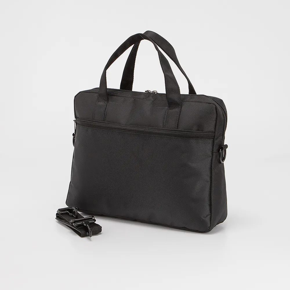Мужская сумка для ноутбука от бренда Mr. Bag. Модель выполнена из плотного текстиля практичного черного цвета, внутри одно основное отделение для документов формата А4, карман на молнии. Застегивается на молнию. С лицевой и задней стороны - карман на молнии. Модель на двух удобных ручках для переноса, дополнена съемным регулируемым плечевым ремнем.