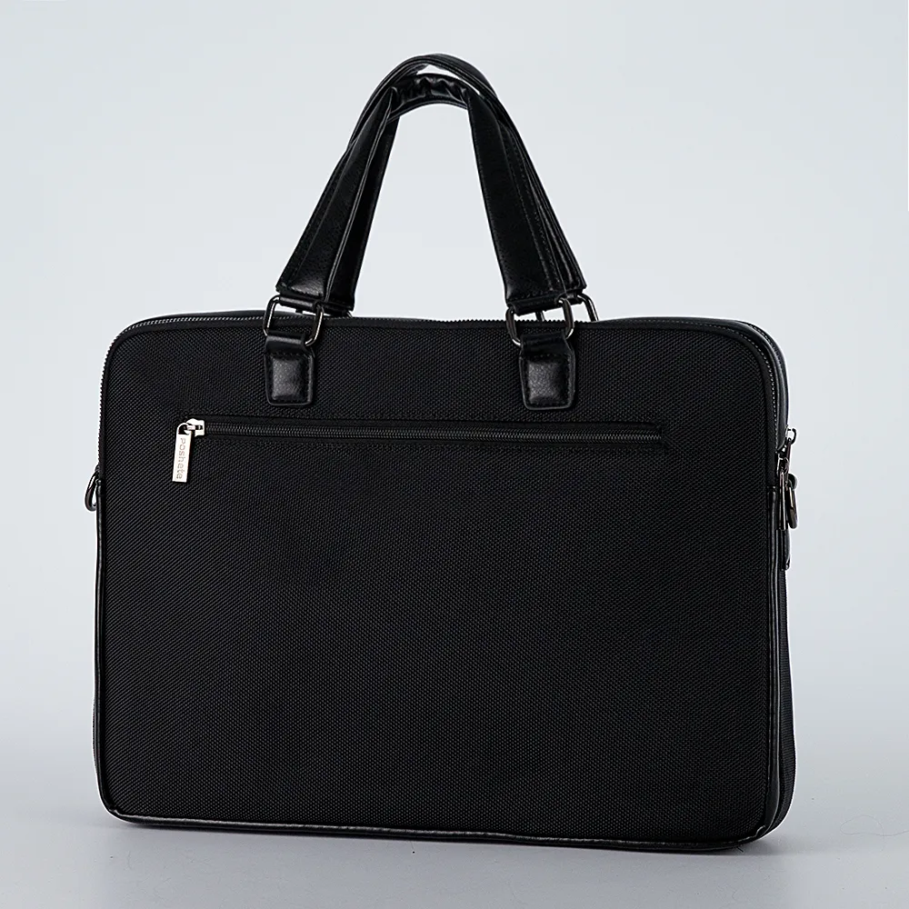 Стильная сумка от бренда Poshete выполнена из текстильного материала и искусственной кожи. Модель прямоугольной формы, с двумя ручками на квадратных-держателях, со съемным плечевым ремнем. Два отделения на молнии, с текстильной подкладкой. Внутри: отделение для ноутбука, карманы. Спереди – карман на молнии. Передняя сторона декорирована вставками.