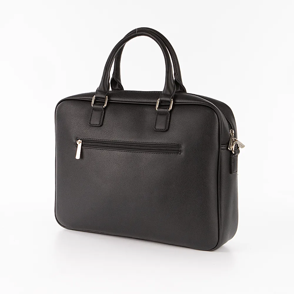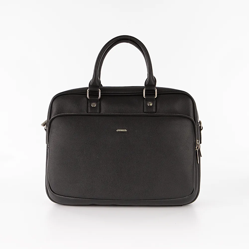 Сумка от торговой марки David Jones из искусственной кожи черного цвета. Модель с двумя ручками и съемным регулируемым плечевым ремнем, выполненным из текстильного материала. Отделение на молнии. Внутри: фирменная подкладка, накладной карман с уплотненной стенкой и липучкой и два кармана на молнии. На лицевой и задней сторонах – карман на молнии.
