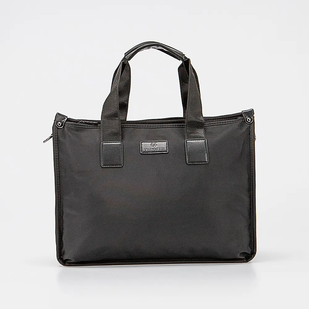 Мужская сумка Valigetti из практичного текстильного материала и искусственной кожи черного цвета. Модель с двумя удлиненными ручками и съемным регулируемым плечевым ремнем с наплечником. Три отделения на молнии, с текстильной подкладкой. В основном отделении: вместительный накладной карман, два накладных карман, карман на молнии.