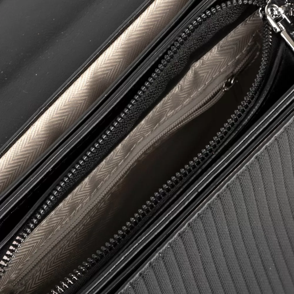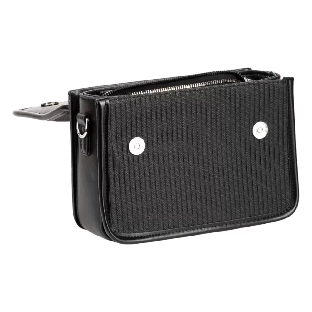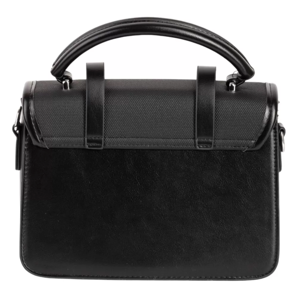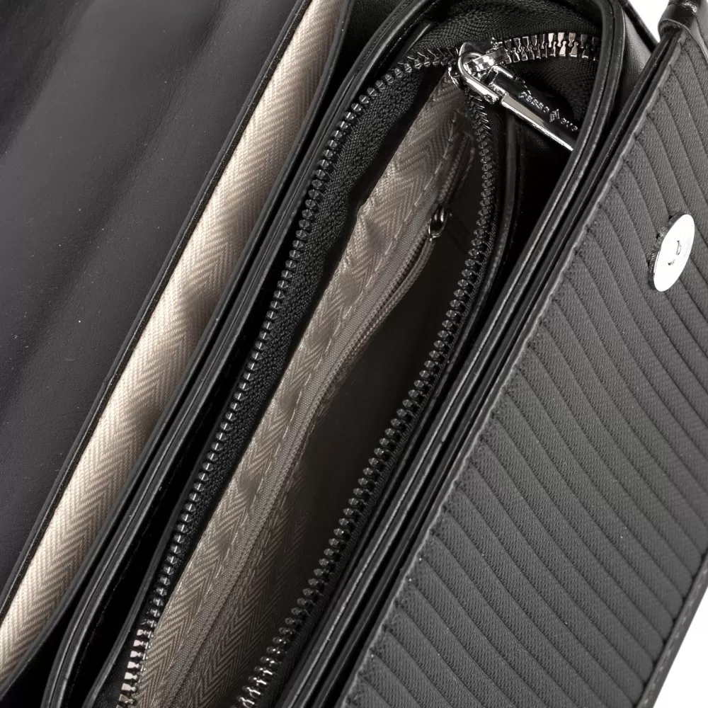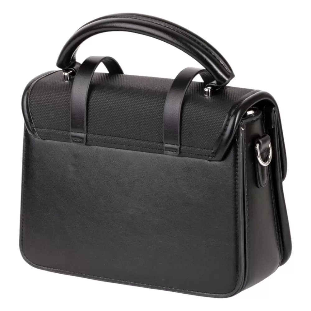 Сумка от бренда Passo Avanti выполнена из искусственной кожи черного цвета. Модель с ручкой и съемным регулируемым плечевым ремнем. Декорирована платком твилли. Клапан на магнитных кнопках закрывает три отделения: среднее — на молнии, боковые — без застежки.