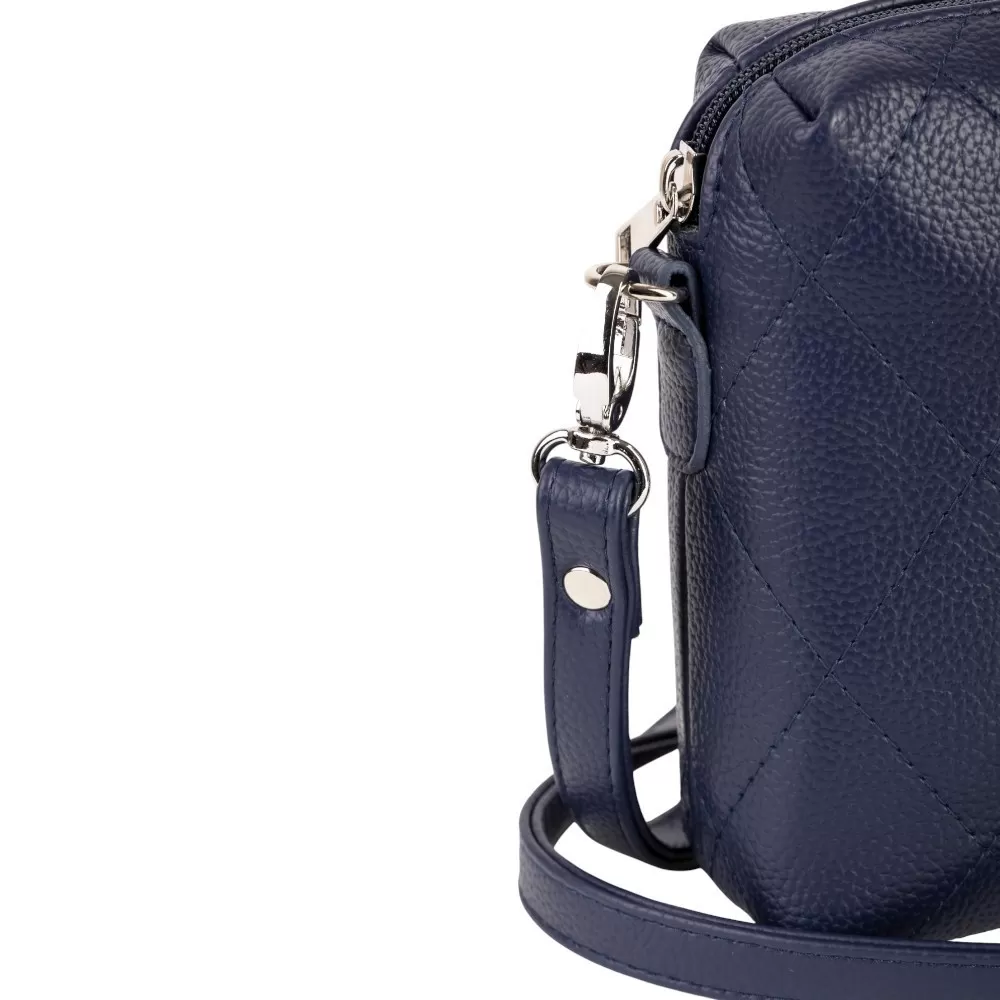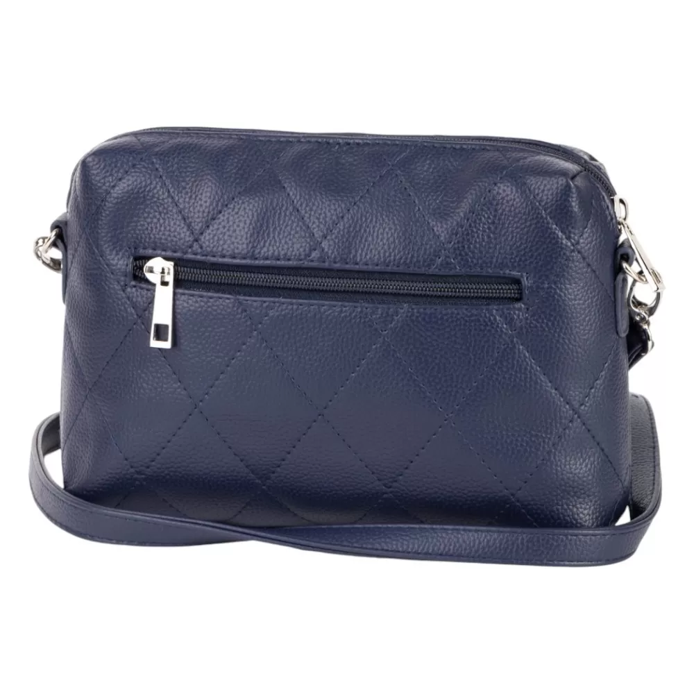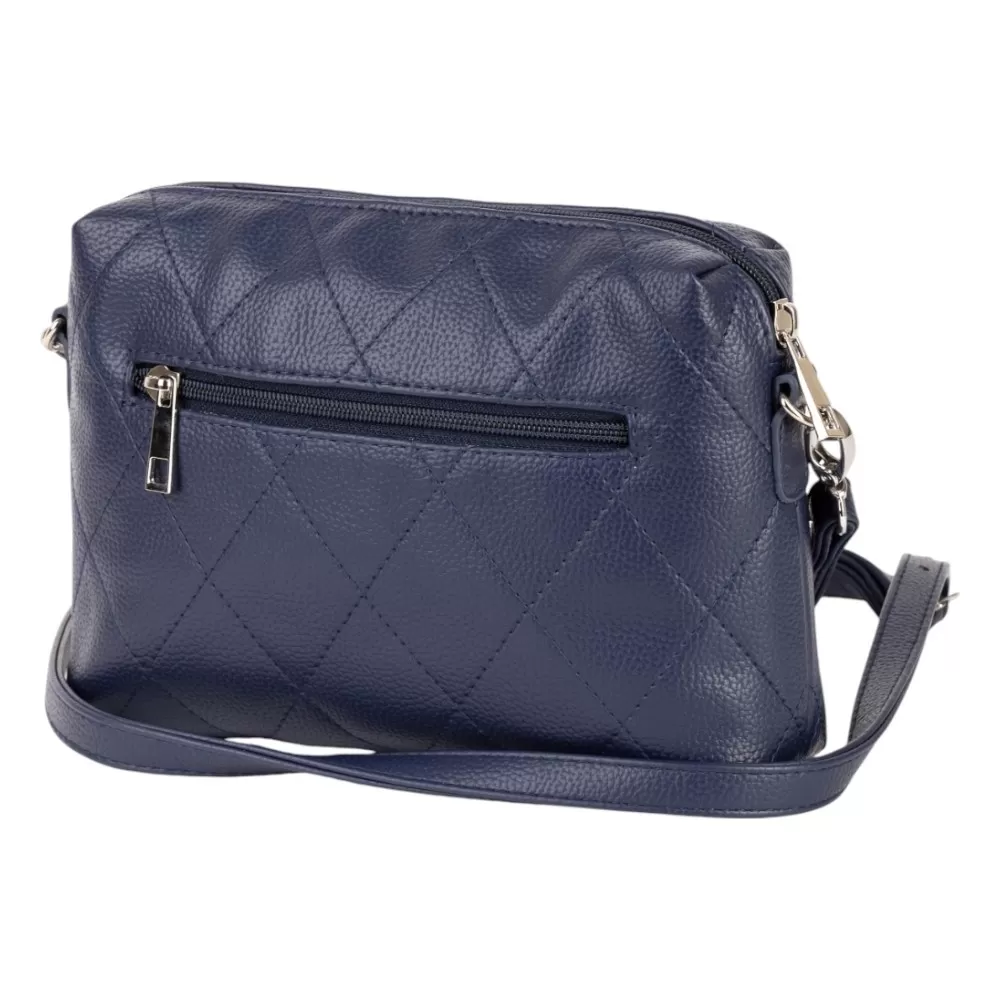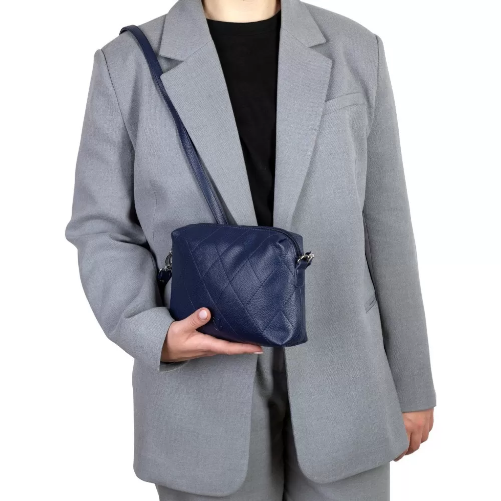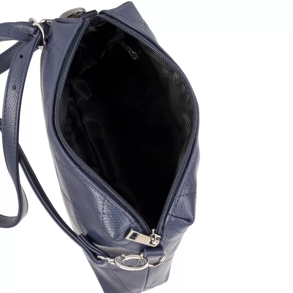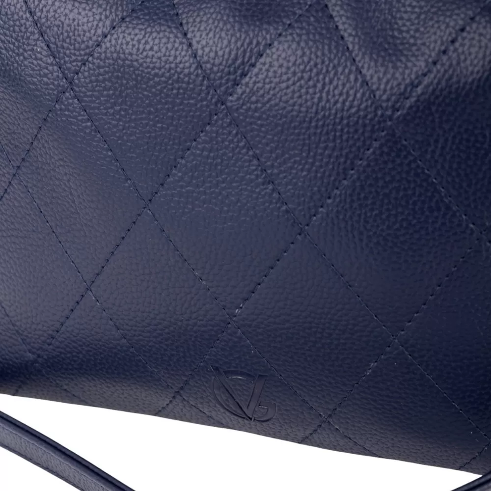 Сумка от бренда Valigetti выполнена из искусственной кожи в синем цвете. Модель со съемным регулируемым плечевым ремнем, на задней стороне сумки расположен горизонтальный карман быстрого доступа на молнии, основное отделение закрывается на молнию, внутри: текстильная подкладка, накладной карман на молнии и открытый накладной карман.