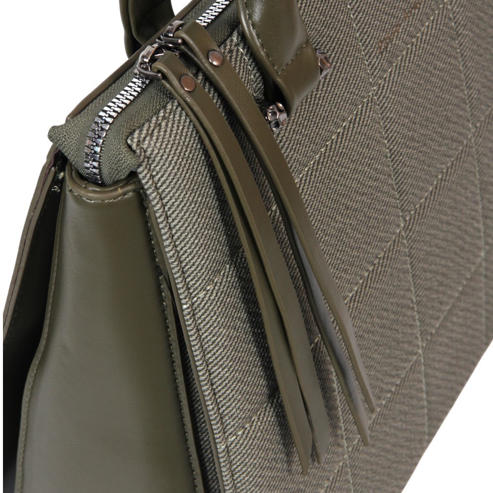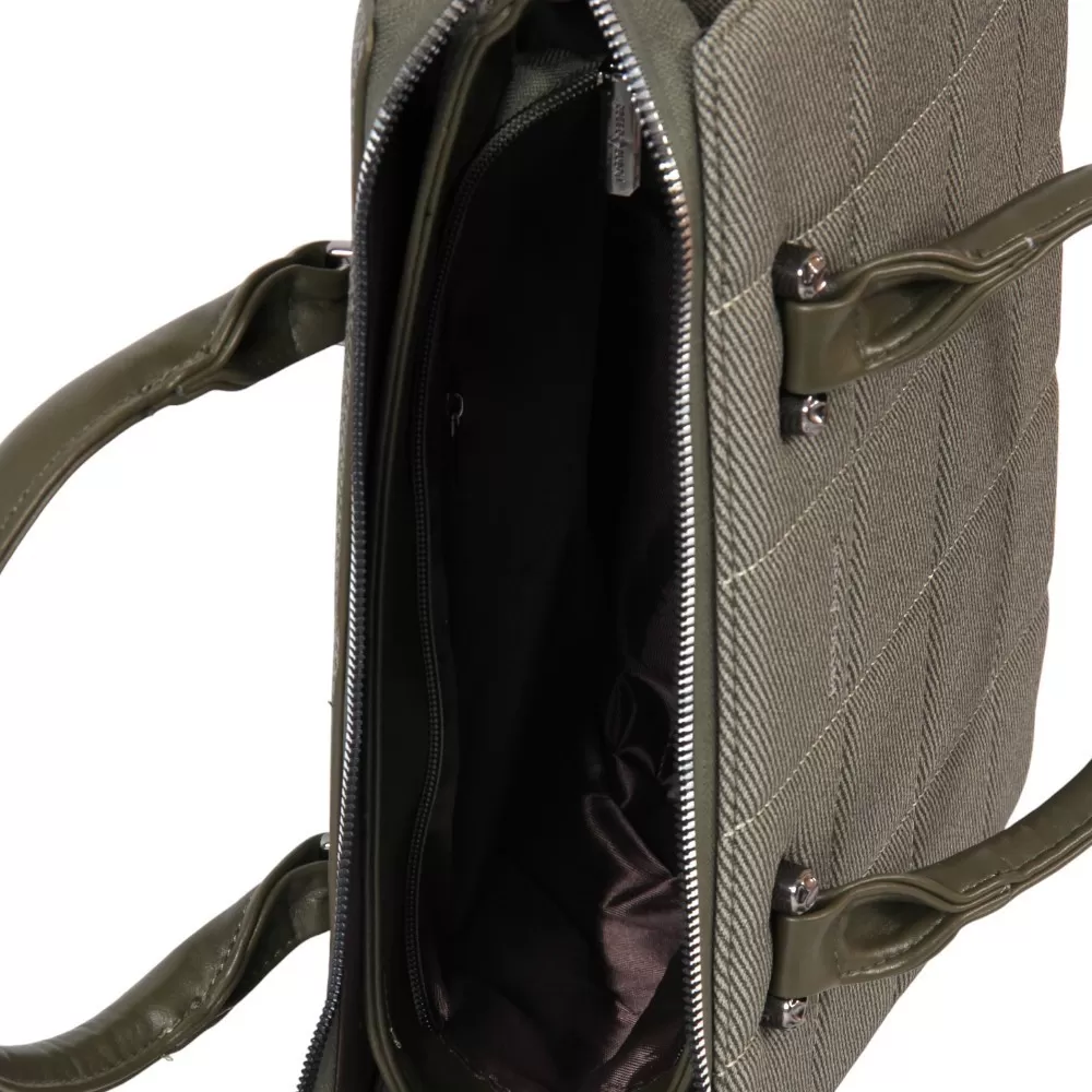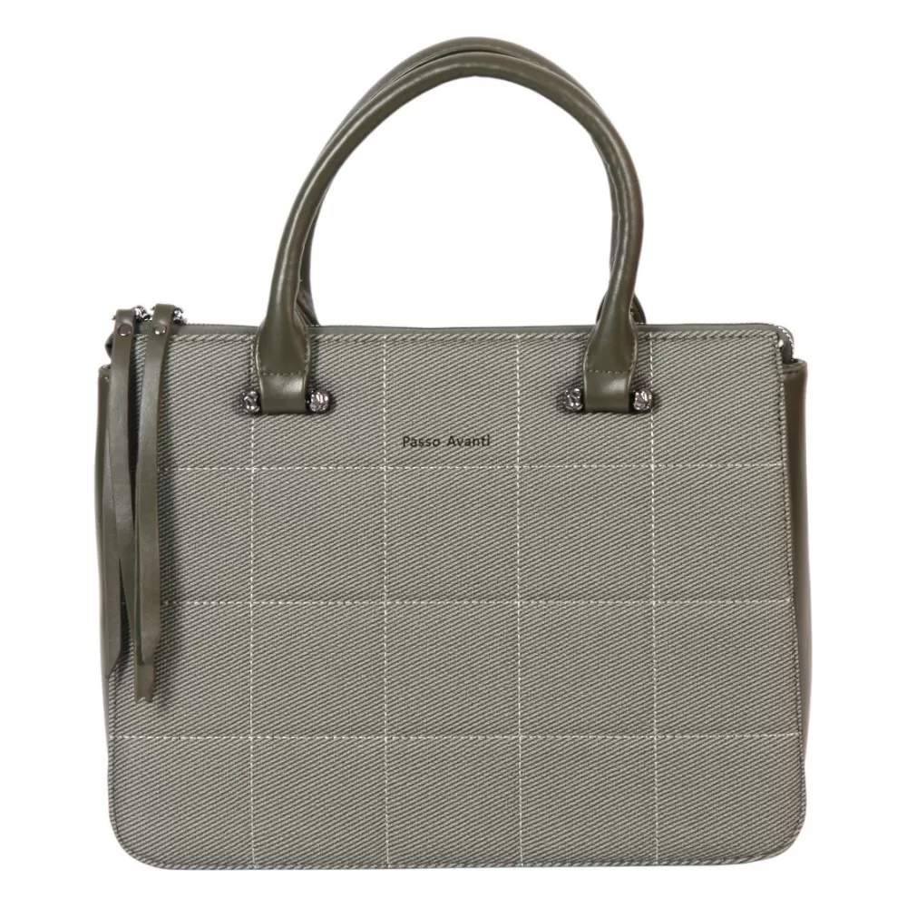 Сумка от бренда Passo Avanti выполнена из искусственной кожи зеленого цвета. Модель с двумя удлиненными ручками. Декорирована стежкой. Отделение на молнии. Внутри: текстильная подкладка, карман на молнии, накладной карман. На задней стороне - карман на молнии. Дно оснащено металлическими ножками для защиты от износа.