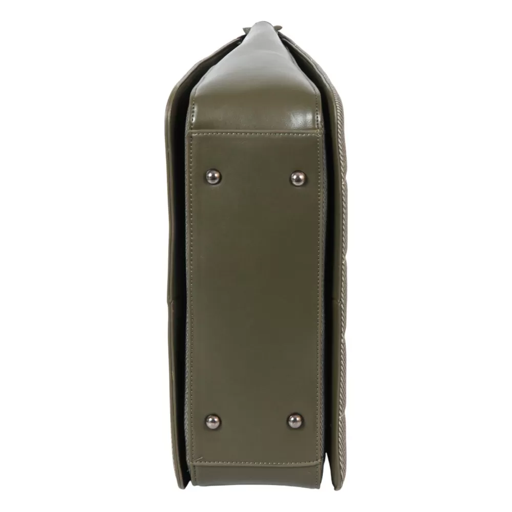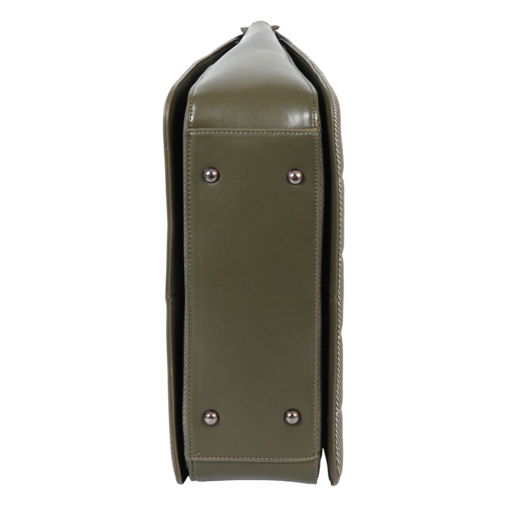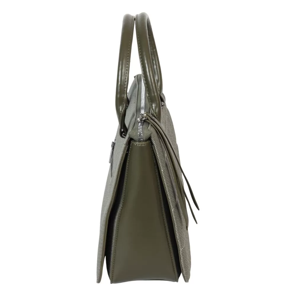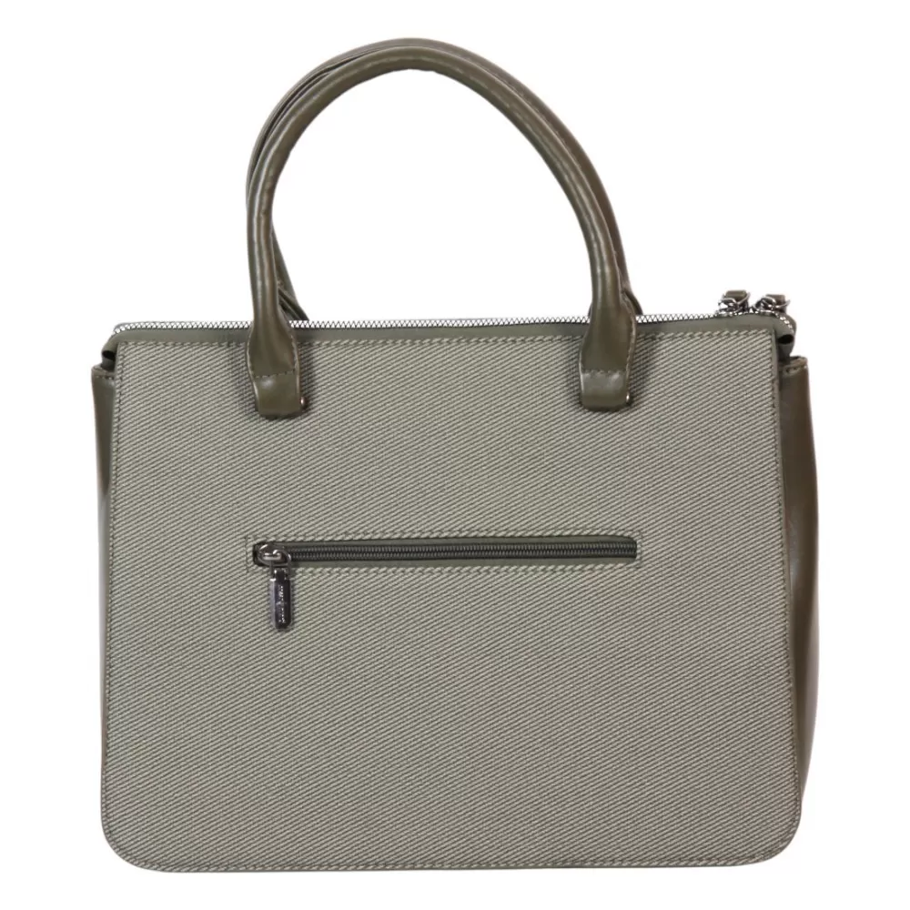 Сумка от бренда Passo Avanti выполнена из искусственной кожи зеленого цвета. Модель с двумя удлиненными ручками. Декорирована стежкой. Отделение на молнии. Внутри: текстильная подкладка, карман на молнии, накладной карман. На задней стороне - карман на молнии. Дно оснащено металлическими ножками для защиты от износа.
