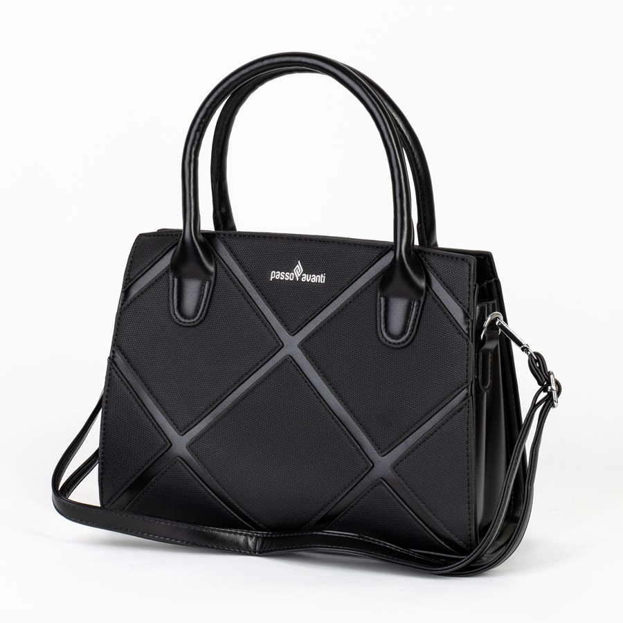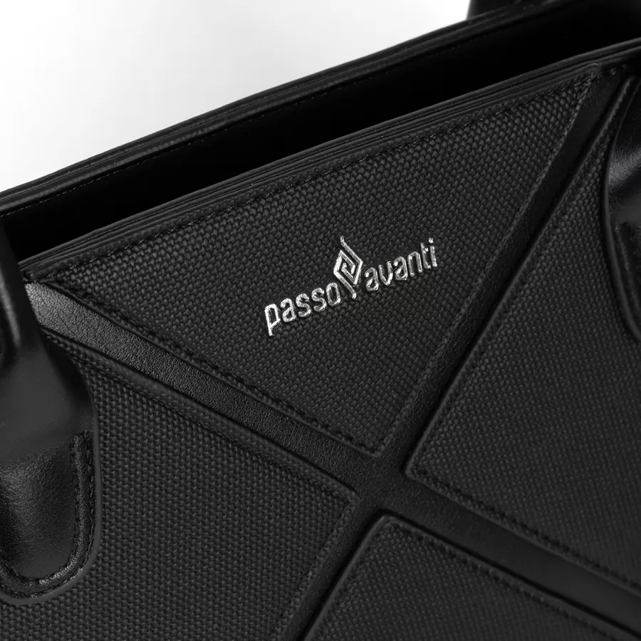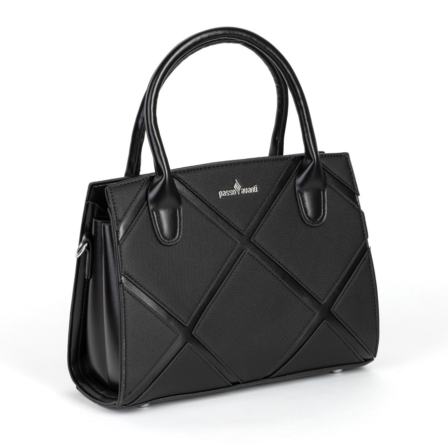 Стильная женская сумка Passo Avanti из искусственной кожи. Держит форму. Имеет 2 отделения под внешней молнией. Внутри также есть карман на молнии. Твердые ручки вшиты в сумку. На внешней стороне есть карман на молнии. Также в комплект входит съёмный плечевой ремень