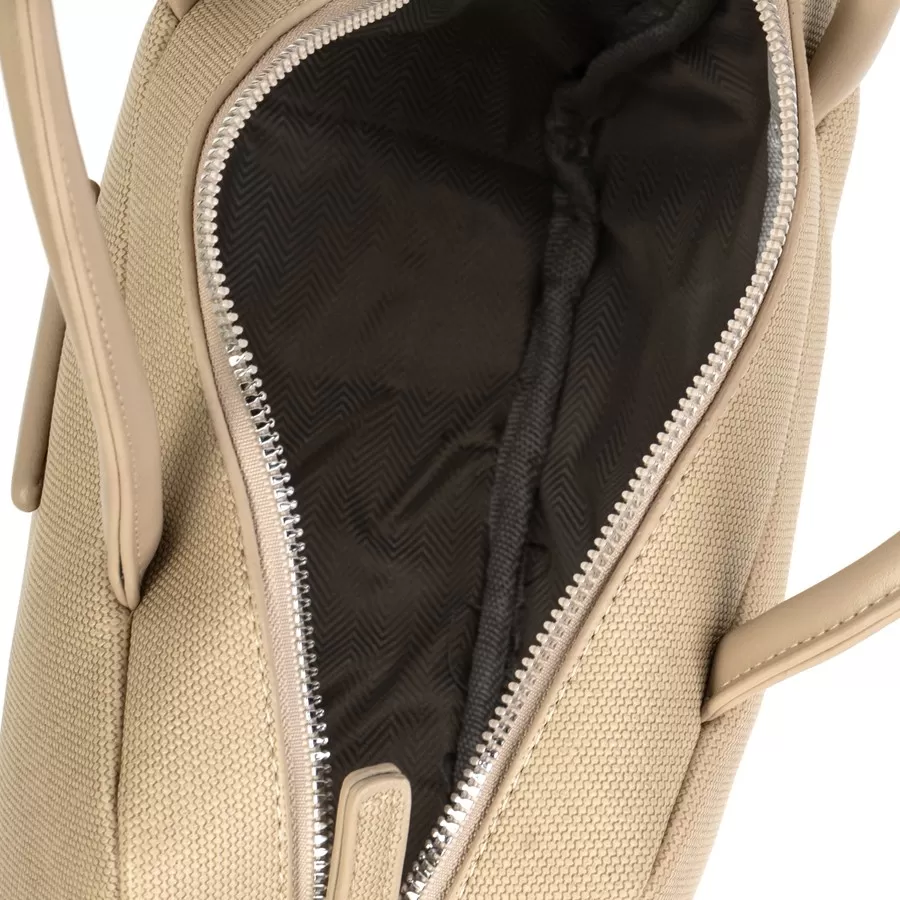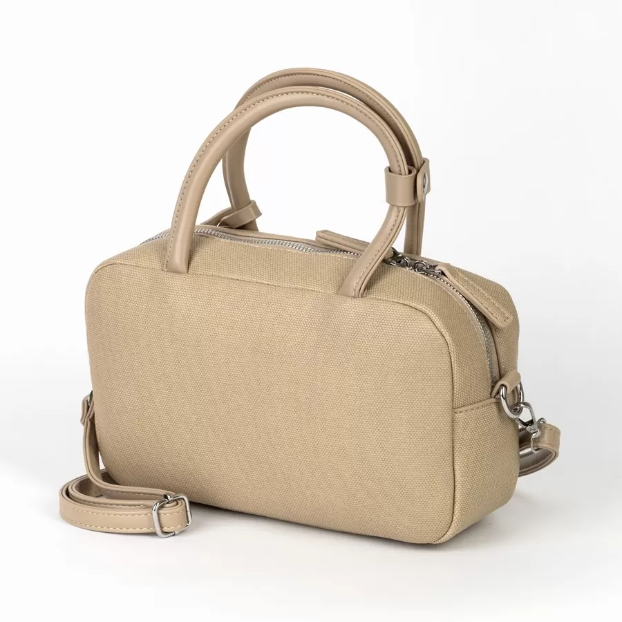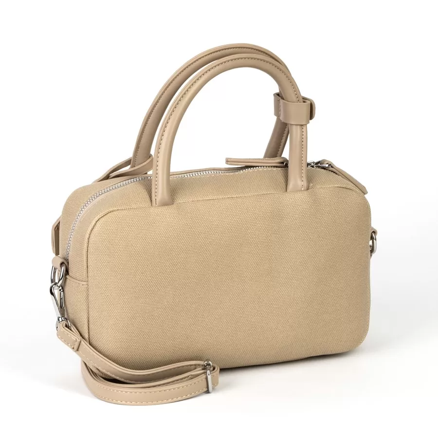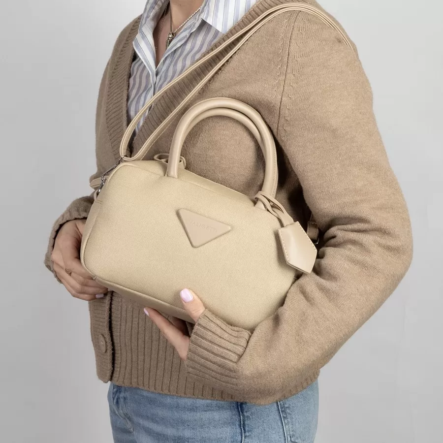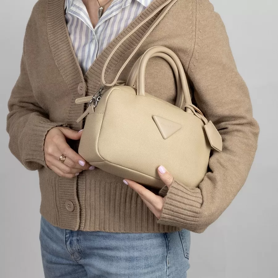 Женская сумка бренда Valigetti из искусственной кожи зернистой структуры. Имеет пришитые кожаные ручки и плечевой ремень на карабинах. Внутри есть карман на молнии и кармашек