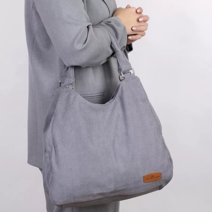 Сумка от торговой марки Passo Avanti выполнена из текстильного материала серого цвета. Модель с удлиненной ручкой. Отделение на молнии. Внутри: текстильная подкладка.