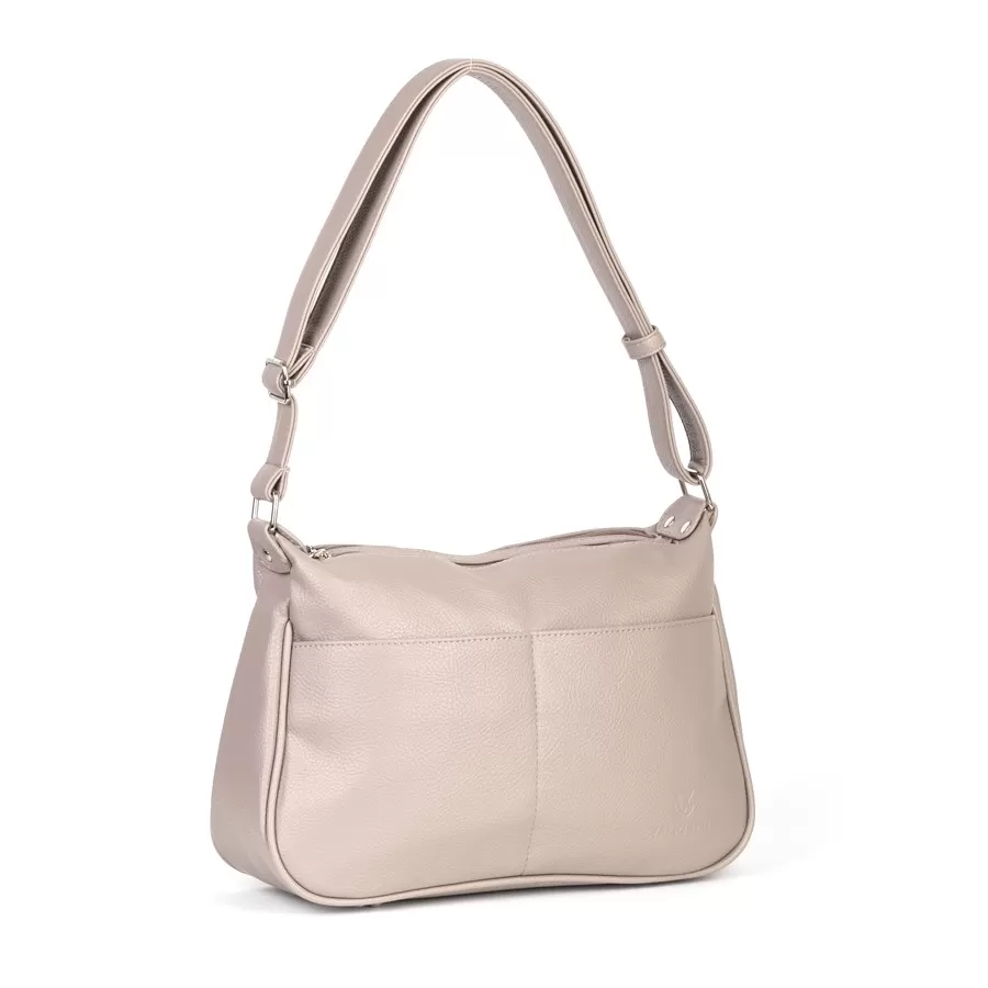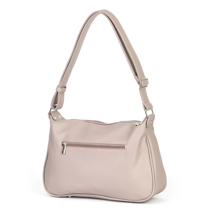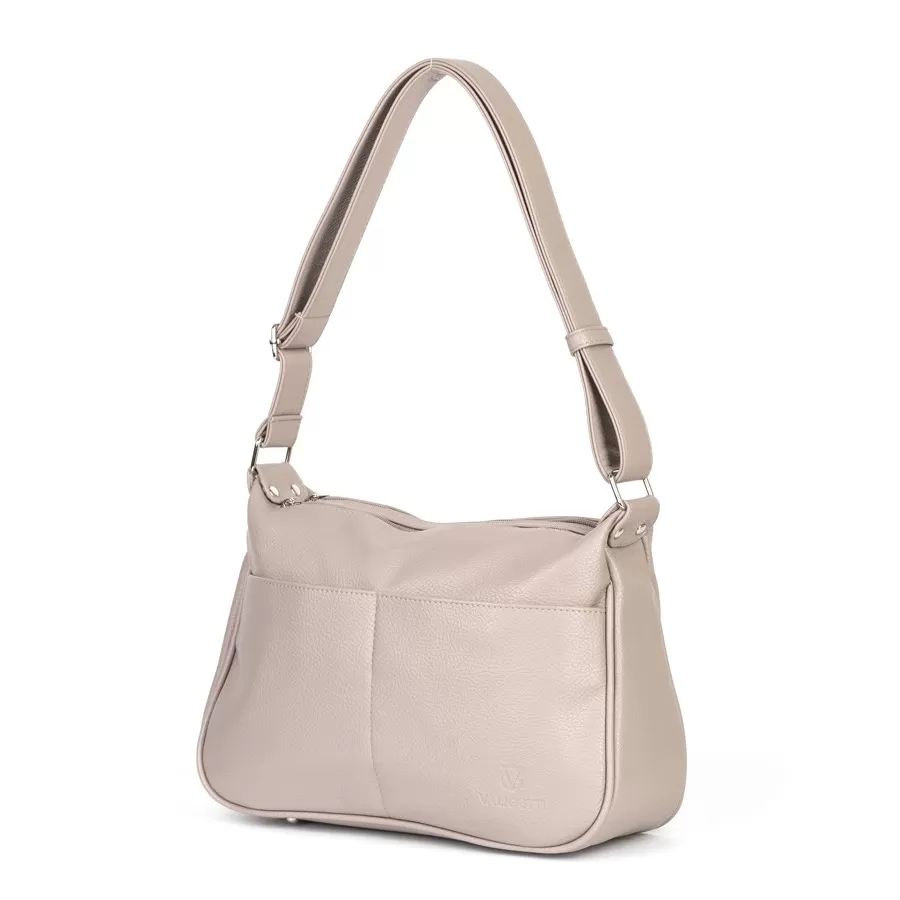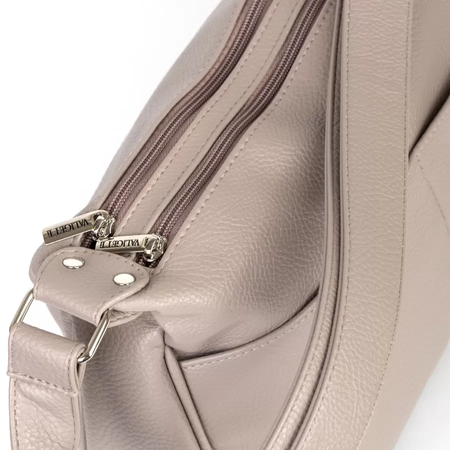 Сумка от торговой марки Valigetti из искусственной кожи. Модель с одной ручкой. Два отделения на молнии. Внутри: фирменная подкладка, перегородка и карман на молнии. На задней стороне – карман на молнии. Дно оснащено металлическими ножками для защиты от износа.