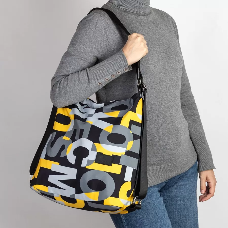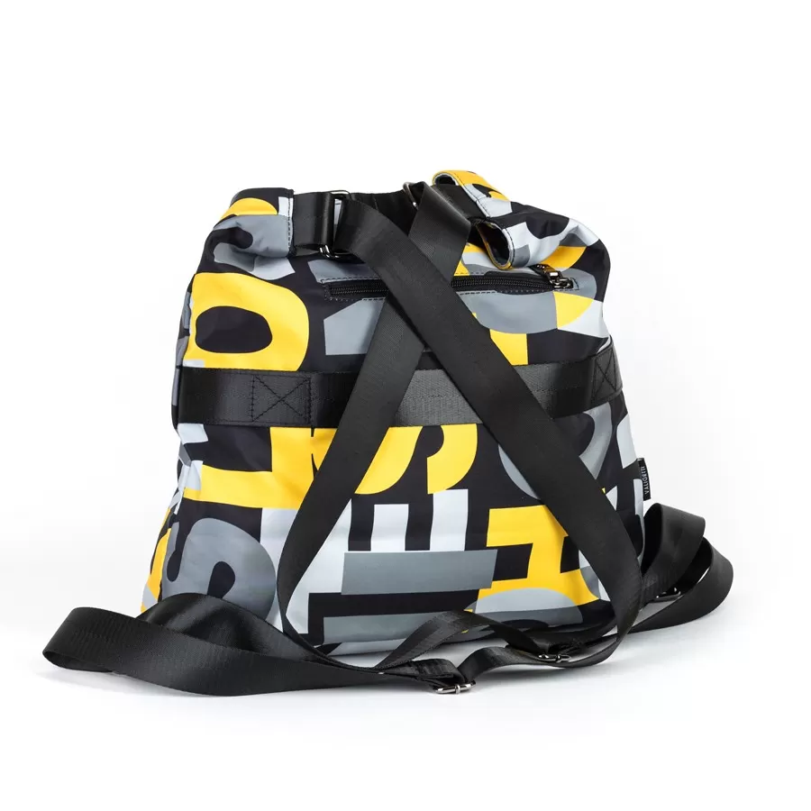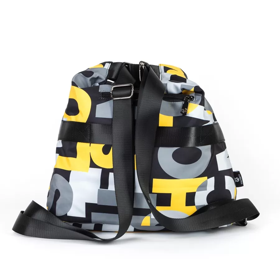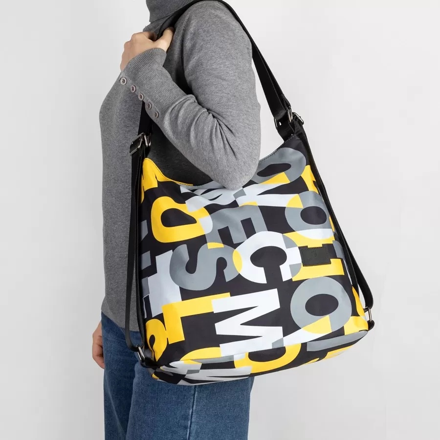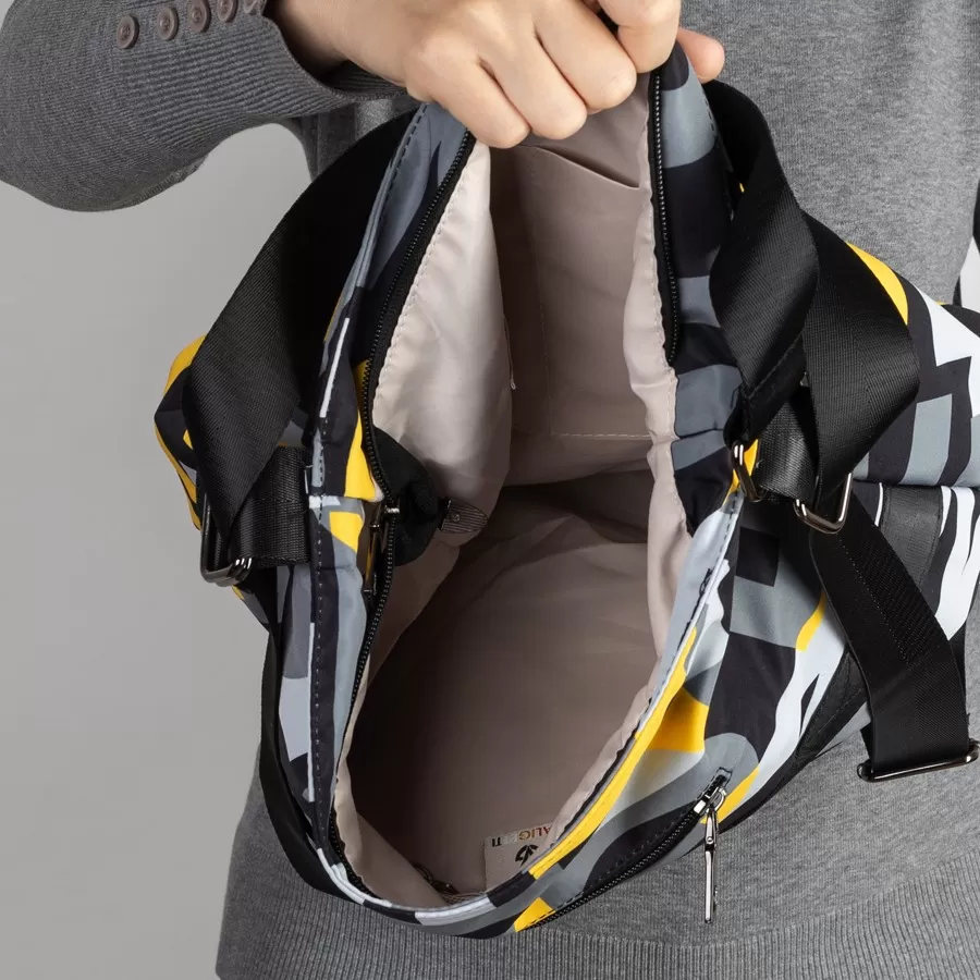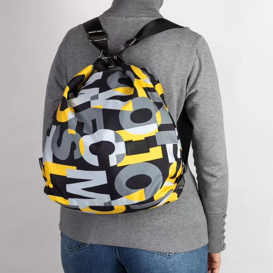 Стильная женская сумка-рюкзак бренда Valigetti из текстиля с ярким дизайном. Имеет регулируемый текстильный плечевой ремешок, перестегивающийся в лямки для ношения на спине. Внутри основного отделения под молнией карман на молнии и 2 кармашка для мелких вещей. На задней стороне имеется карман на молнии