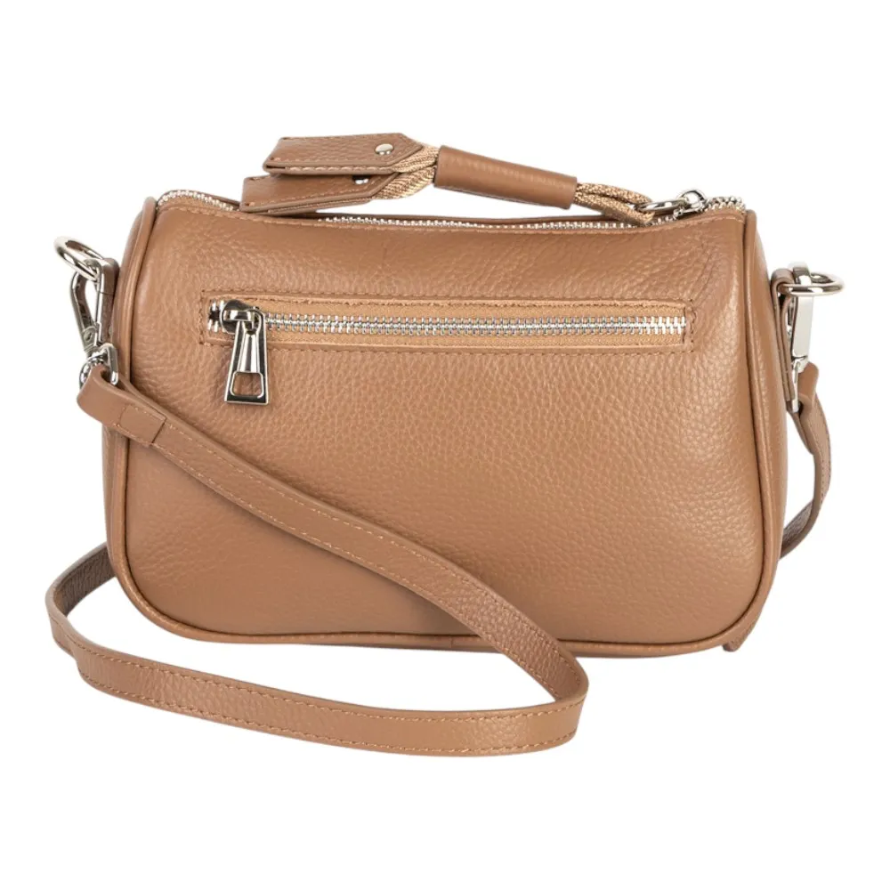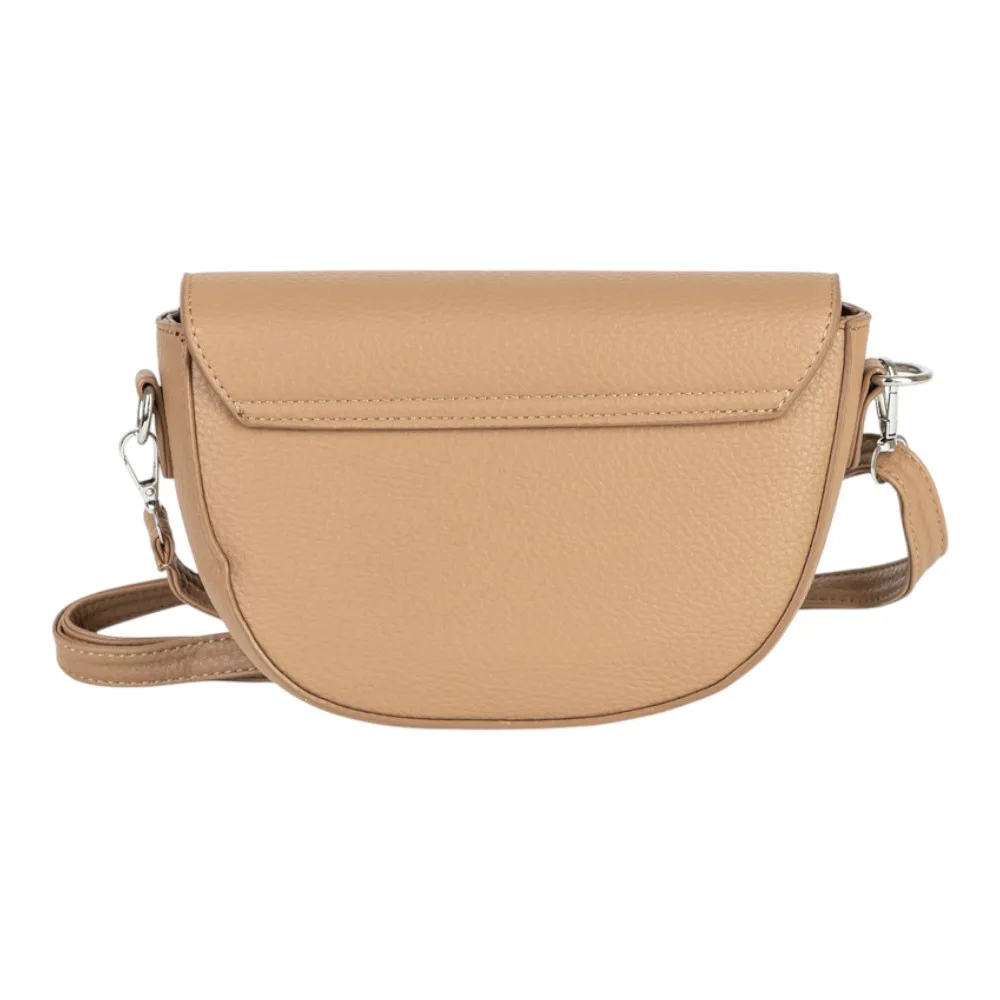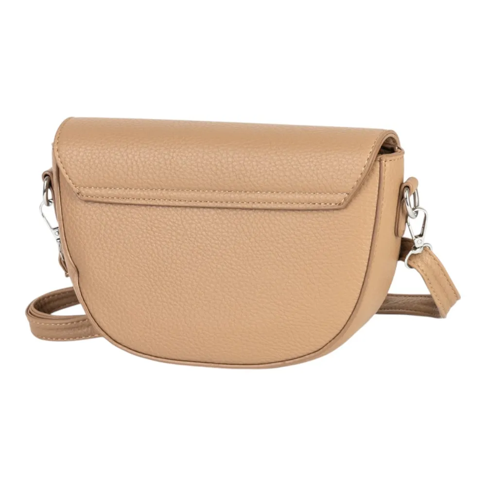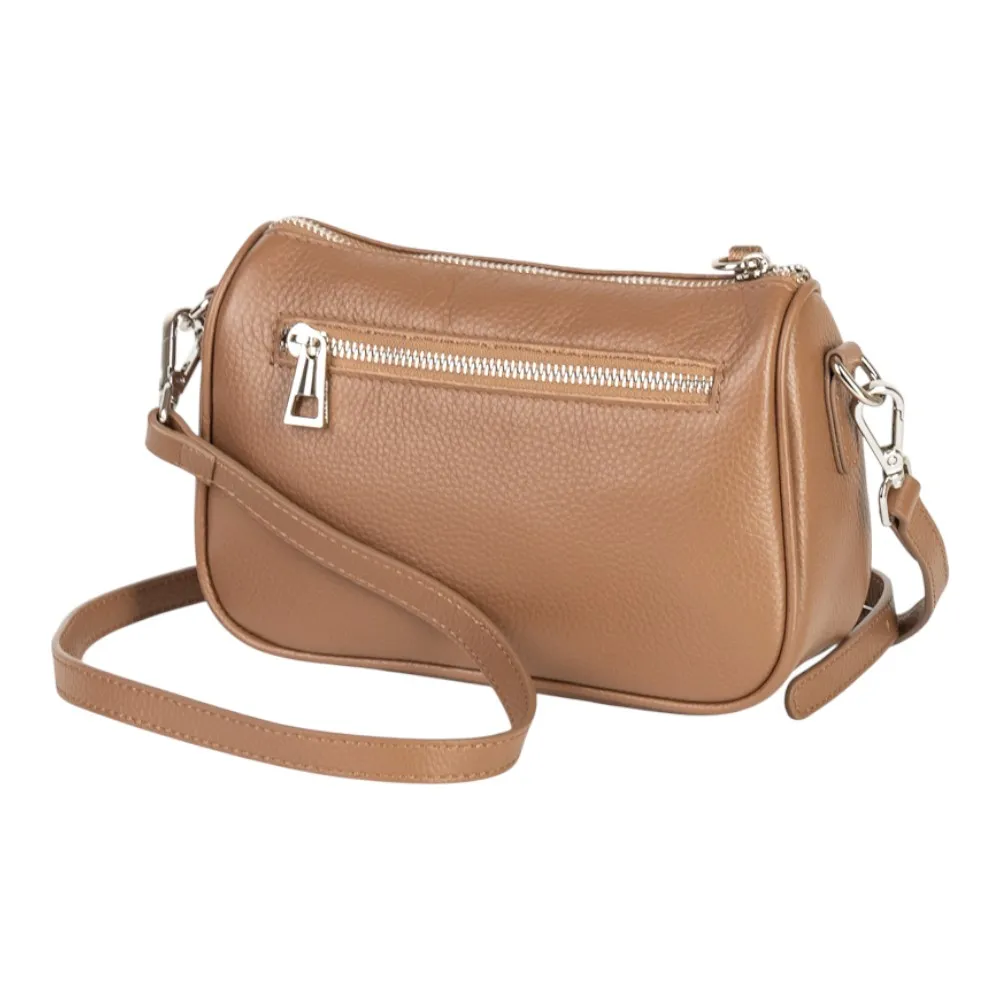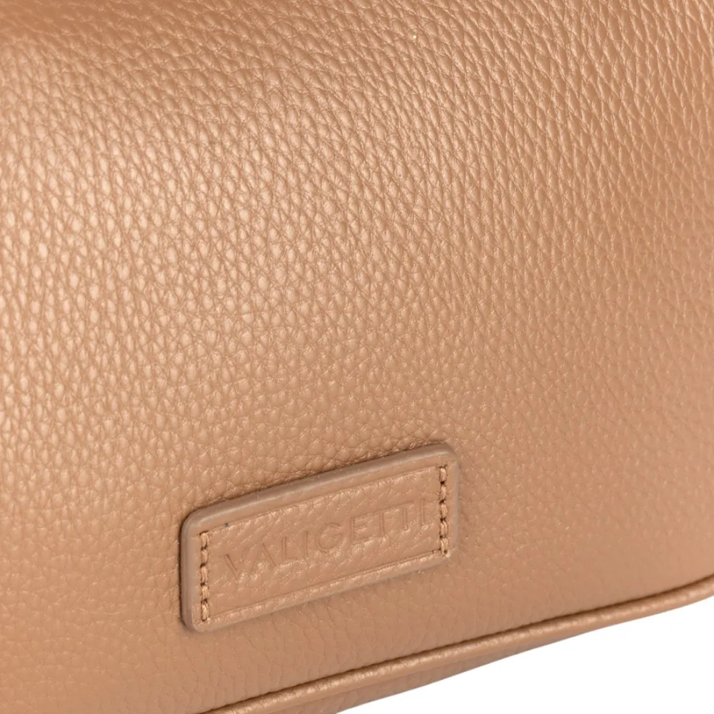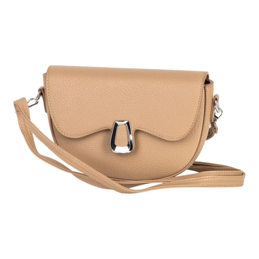 Сумка от торговой марки Passo Avanti из искусственной кожи бежевого цвета. Есть специальный карабин, к которому можно пристегнуть плечевой ремешок. Открывается на замок-клапан и внутри имеет 1 большое отделение с еще одним тайным кармашком, который застегивается на молнию.