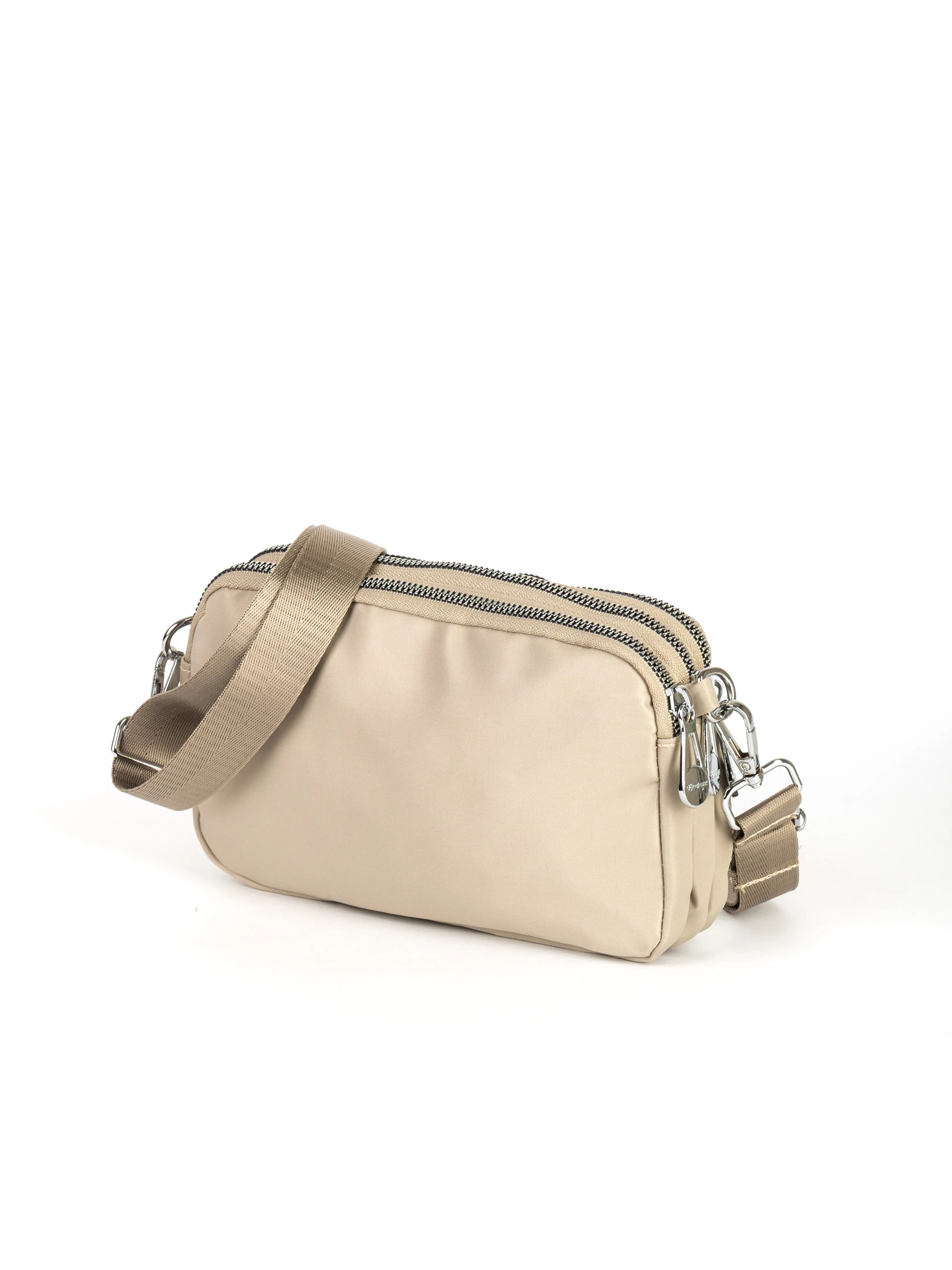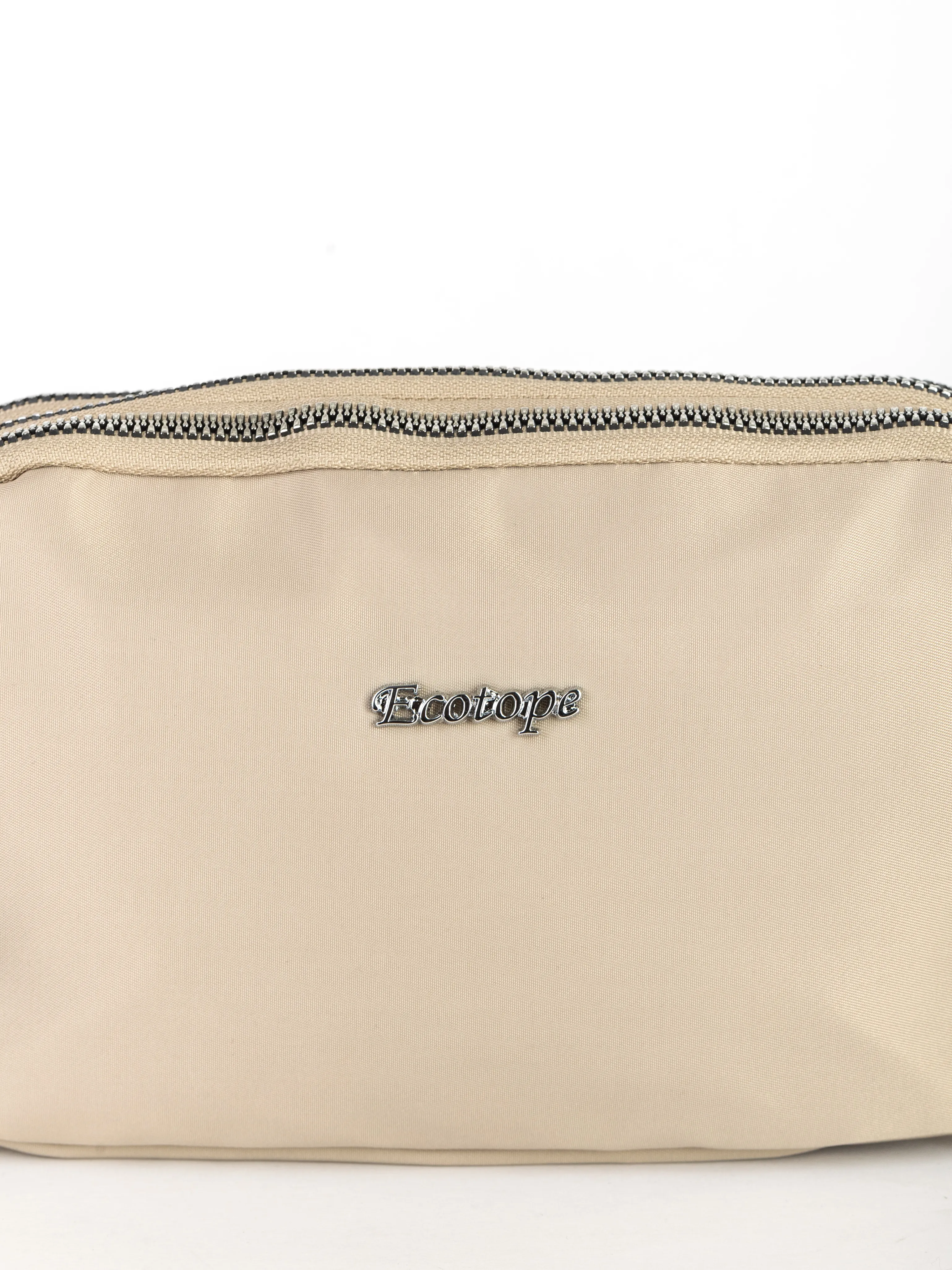 Сумка-планшет от бренда Ecotope из практичного текстильного материала бежевого цвета. Модель со съемным регулируемым плечевым ремнем. Три отделения на молнии, с текстильной подкладкой. Внутри карман на молнии и накладной карман. На задней стороне — карман на молнии.