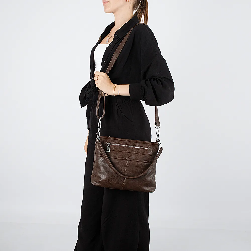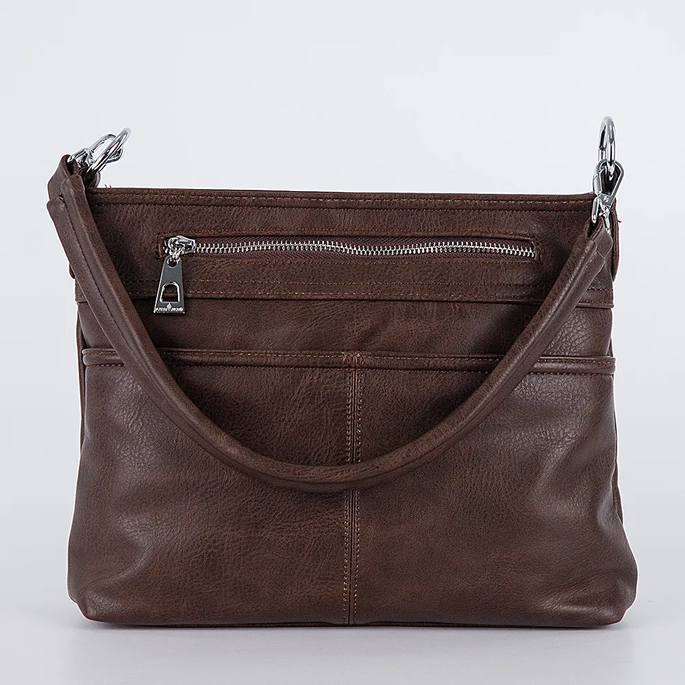 Сумка от торговой марки Passo Avanti выполнена из искусственной кожи белого цвета. Квадратная модель со съемной ручкой и съемным регулируемым плечевым ремнем. Отделение на молнии. Внутри: текстильная подкладка, средник и карман на молнии, накладной карман. На передней стороне – два кармана на молнии – прорезной и накладной. На задней – карман на молнии. Сумку можно носить через плечо.