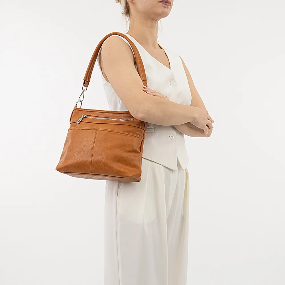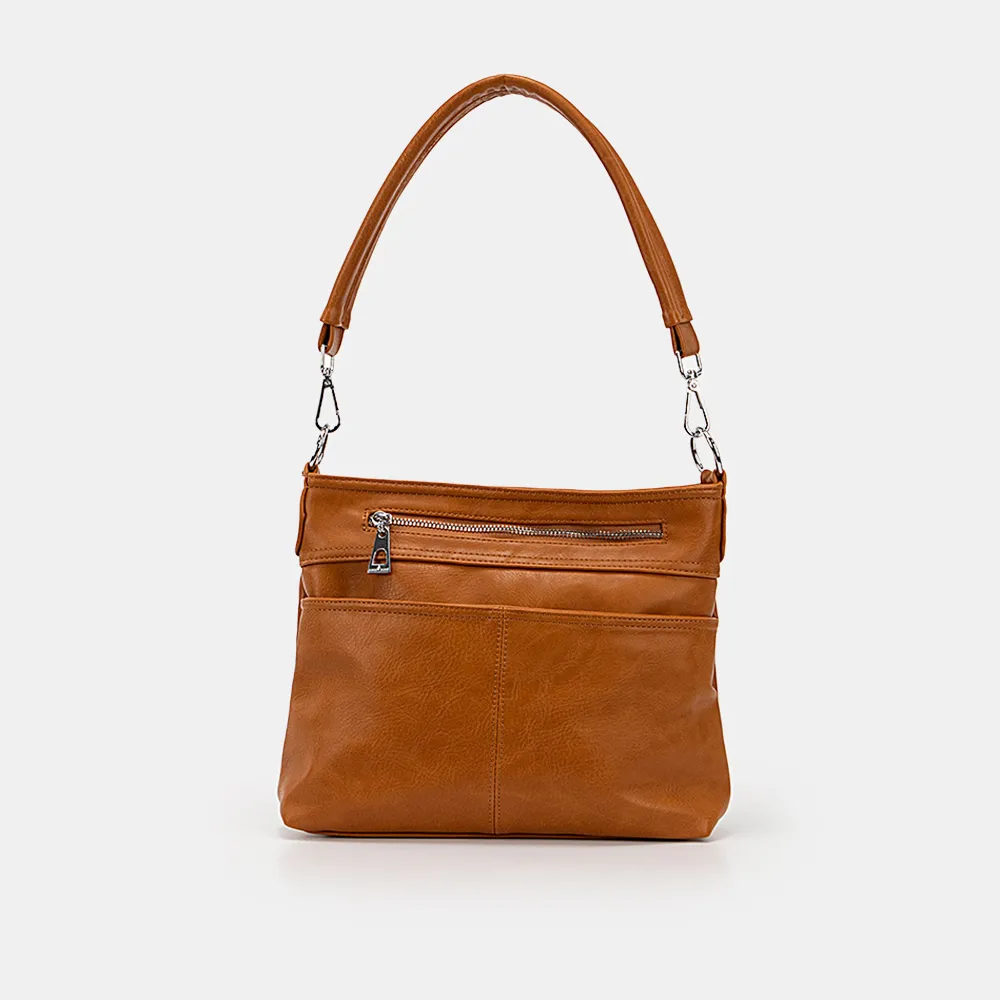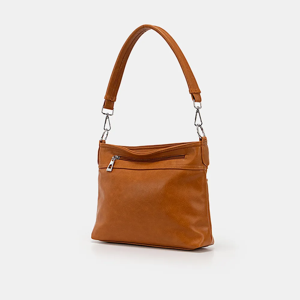 Сумка от торговой марки Passo Avanti выполнена из искусственной кожи белого цвета. Квадратная модель со съемной ручкой и съемным регулируемым плечевым ремнем. Отделение на молнии. Внутри: текстильная подкладка, средник и карман на молнии, накладной карман. На передней стороне – два кармана на молнии – прорезной и накладной. На задней – карман на молнии. Сумку можно носить через плечо.