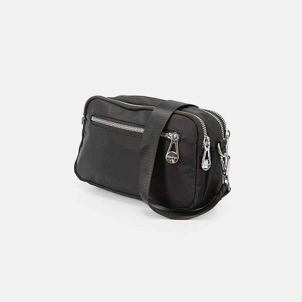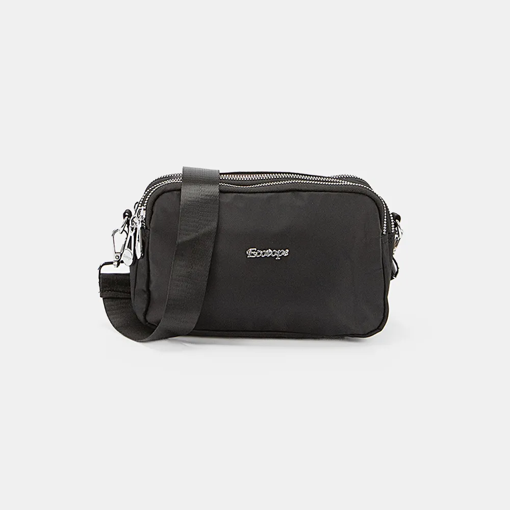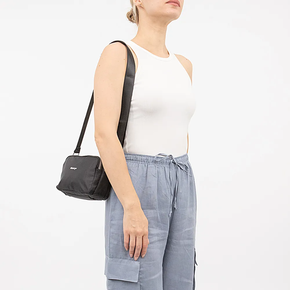 Сумка кросс-боди от торговой марки Ecotope из текстильного материала черного цвета. Модель со съемным регулируемым плечевым ремнем. Три отделения на молнии с текстильной подкладкой. В одном из отделений – карман на молнии. На задней стороне – карман на молнии.