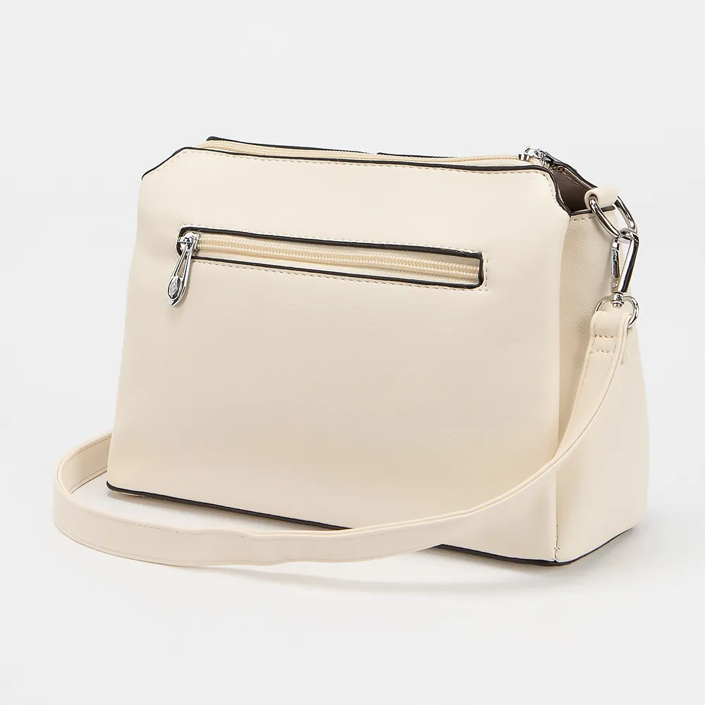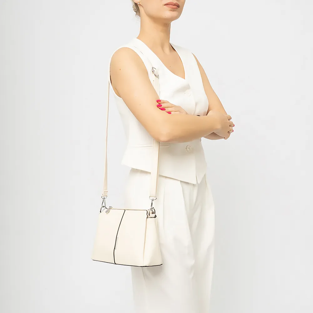Стильная сумка через плечо от бренда Passo Avanti выполнена из мягкой искусственной кожи в сочетании бежевого и оливкового цвета. Модель со съемным регулируемым плечевым ремнем. Отделение на молнии, с текстильной подкладкой. Внутри: карман на молнии, накладной карман. На задней стороне – карман на молнии. На передней – накладной карман на магнитной кнопке, также закрывается цупферным замком на декоративном ремешке с пряжкой.