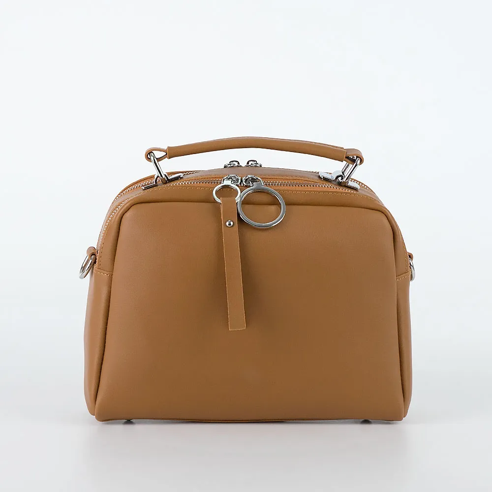Сумка от торговой марки Passo Avanti из искусственной кожи цвета camel. Модель в форме купола со съемным регулируемым плечевым ремнем. Отделение с двумя молниями. Внутри: текстильная подкладка, перегородка и карман на молнии, накладной карман. На задней стороне – карман на молнии. Дно сумки оснащено металлическими ножками для защиты от износа.