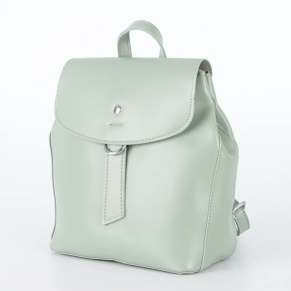 Сумка-рюкзак от торговой марки Passo Avanti из искусственной кожи светло-зеленого цвета. Модель с лямкой-переноской и плечевыми лямками, которые при стягивании превращаются в плечевой ремень. Закрывается клапаном на магнитной кнопке. Сверху по бокам имеются кнопки, с помощью которых регулируется объем и форма рюкзака. Отделение на молнии. Внутри: текстильная подкладка, карман на молнии. На задней стороне – карман на молнии.