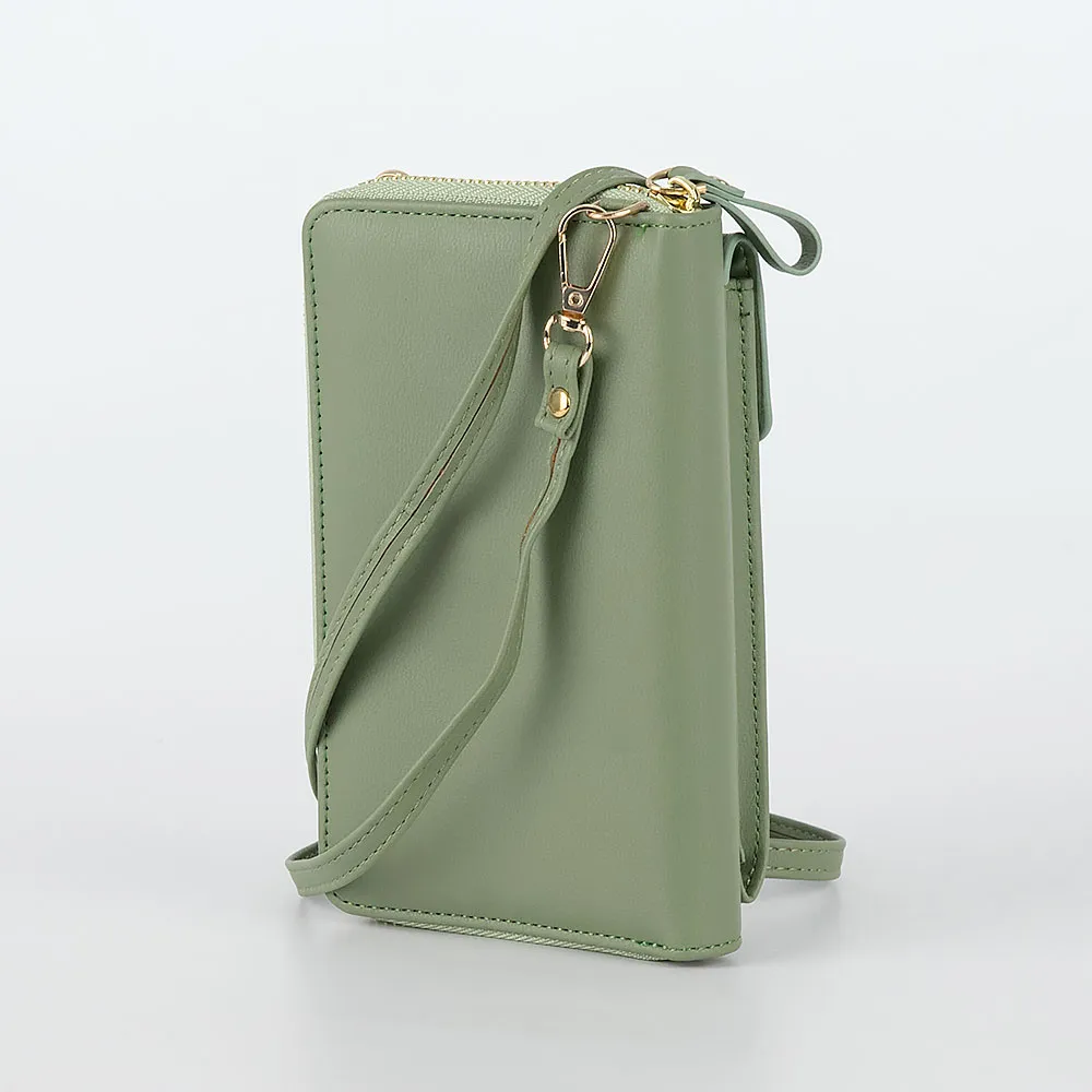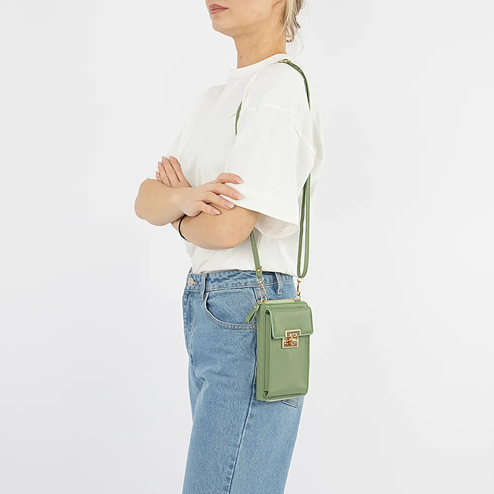 Сумка от торговой марки Passo Avanti из искусственной кожи светло-зеленого цвета. Компактная модель вертикальной ориентации со съемным регулируемым плечевым ремнем. Отделение на молнии с текстильной подкладкой. Внутри: средник с карманом на молнии, карманы для карт. На лицевой стороне – карман, закрывающийся клапаном на поворотном замке.