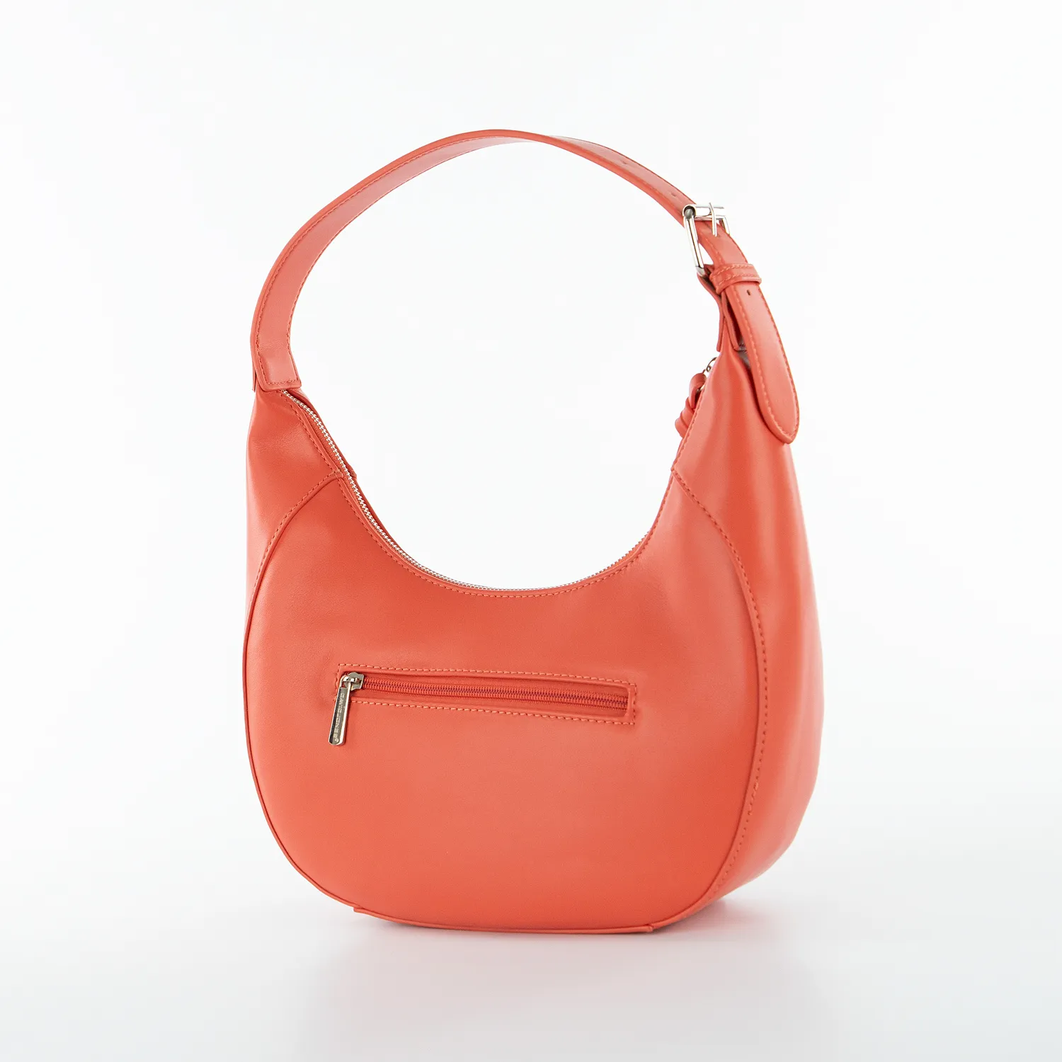 Сумка от торговой марки David Jones из искусственной кожи кораллового цвета. Модель с одной ручкой. Отделение на молнии. Внутри: фирменная подкладка, карман на молнии, накладной карман. На задней стороне – карман на молнии.