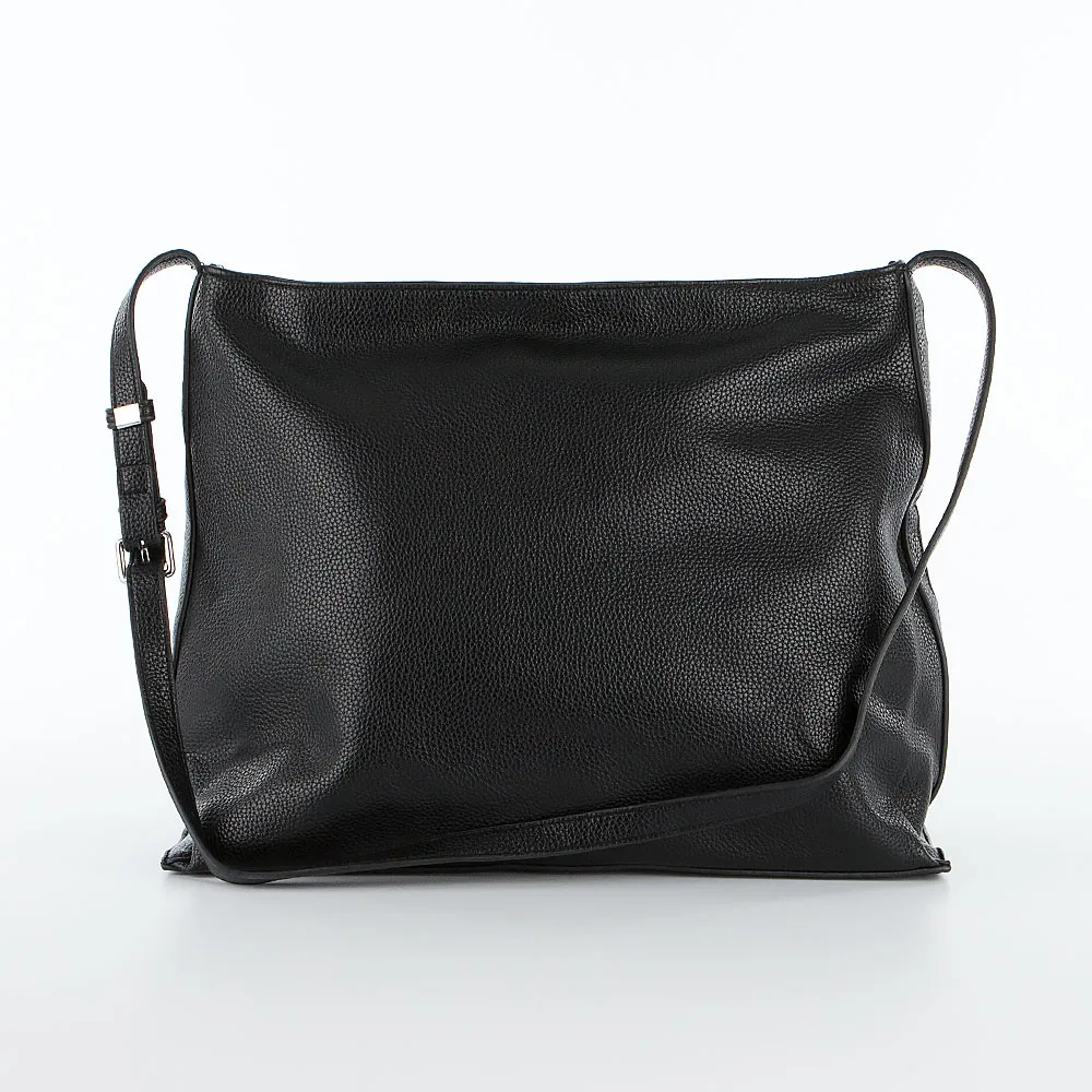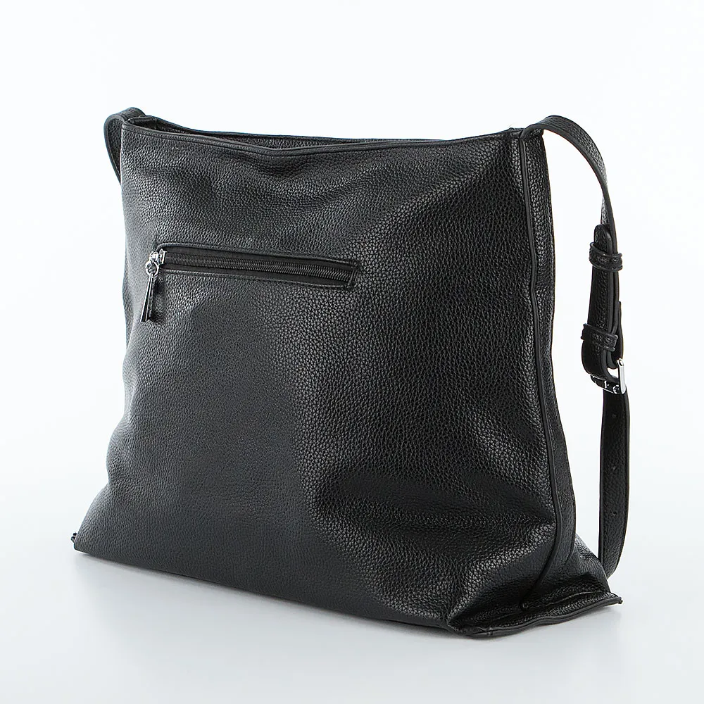 Сумка от торговой марки Passo Avanti из искусственной кожи черного цвета. Модель с удлиненной несъемной ручкой. Отделение на молнии. Внутри: текстильная подкладка, карман на молнии, накладной карман; дно внутри кожаное. На задней стороне – карман на молнии.