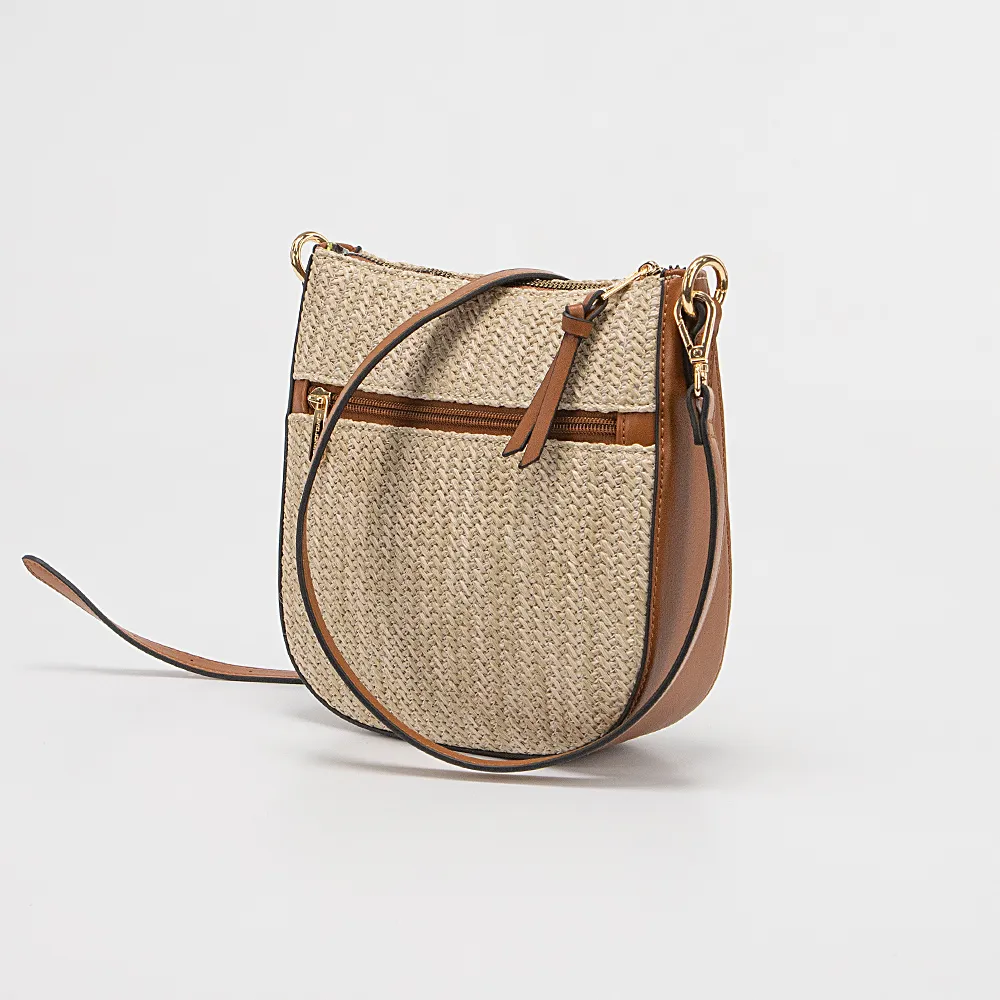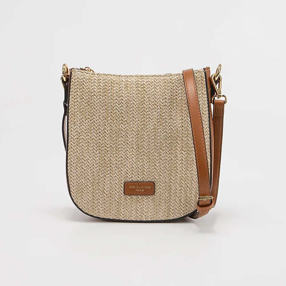 Сумка от торговой марки David Jones из текстиля с оригинальным плетением и искусственной кожи коньячного цвета. Модель со съемным регулируемым плечевым ремнем. Отделение на молнии. Внутри: яркая фирменная подкладка, карман на молнии, накладной карман. На задней стороне – карман на молнии.